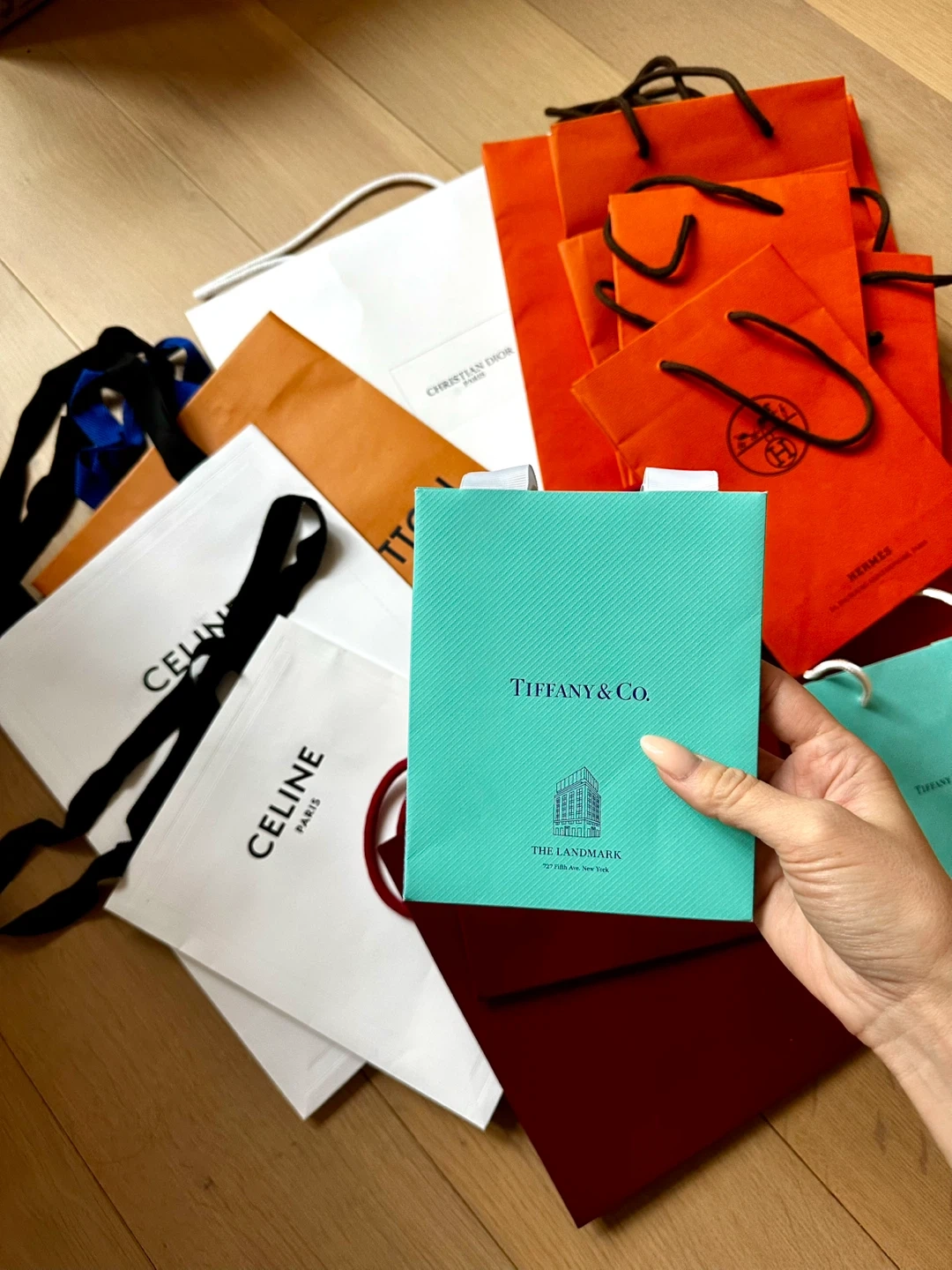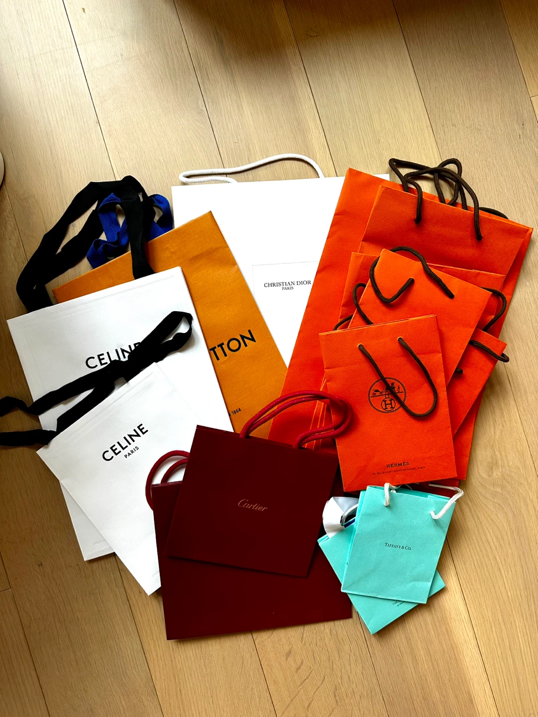 Selling a collection of shopping bags from luxury brands! Includes bags from Christian Dior, Celine, Louis Vuitton, Hermes, Cartier, and Tiffany & Co