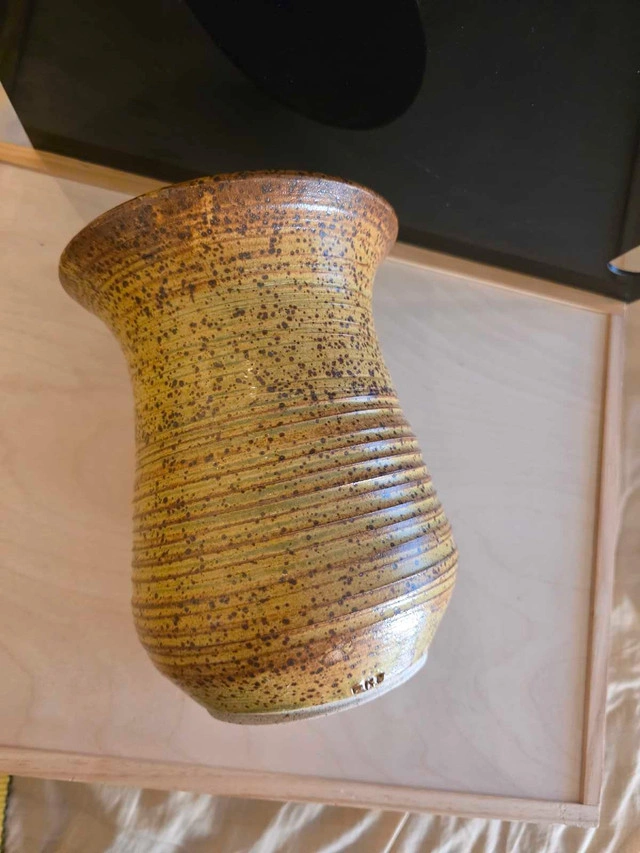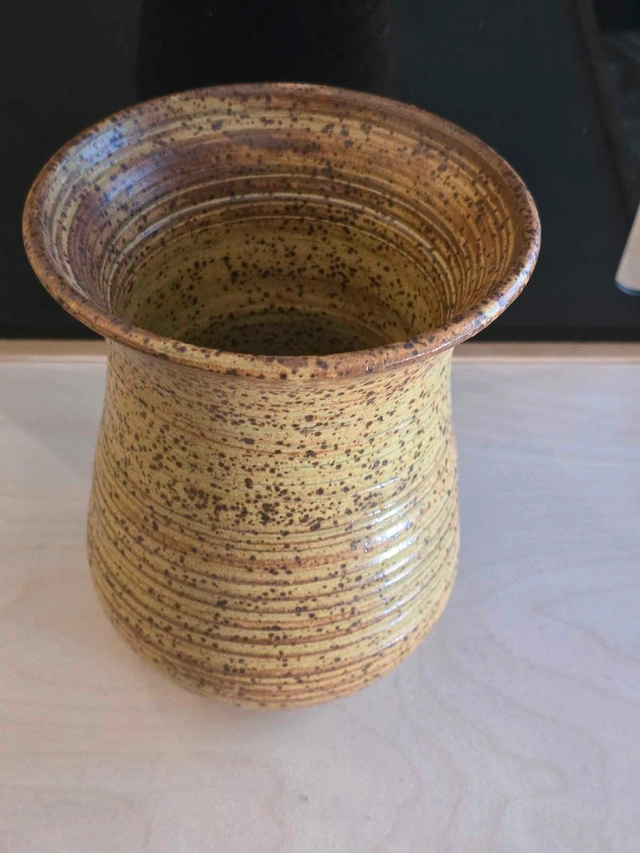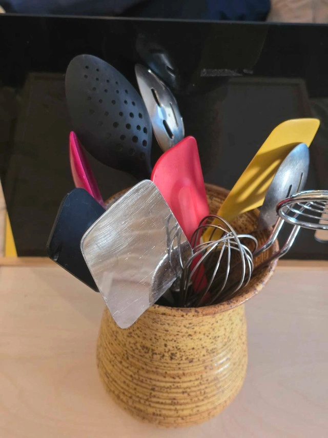97I'm offering a handcrafted cone 10 pottery piece, perfect for holding your kitchen utensils. This new piece is new condition, showcasing a unique design and durable construction. It's a stylish and functional addition to any kitchen. * Material: Cone 10 pottery * Condition: New * Crafted: Handcrafted 8.5 inches high and specifically weighted to hold utensils. Looking to add a touch of artisanal charm to your kitchen? This pottery piece is just the ticket! If the ad is up, it's still available!