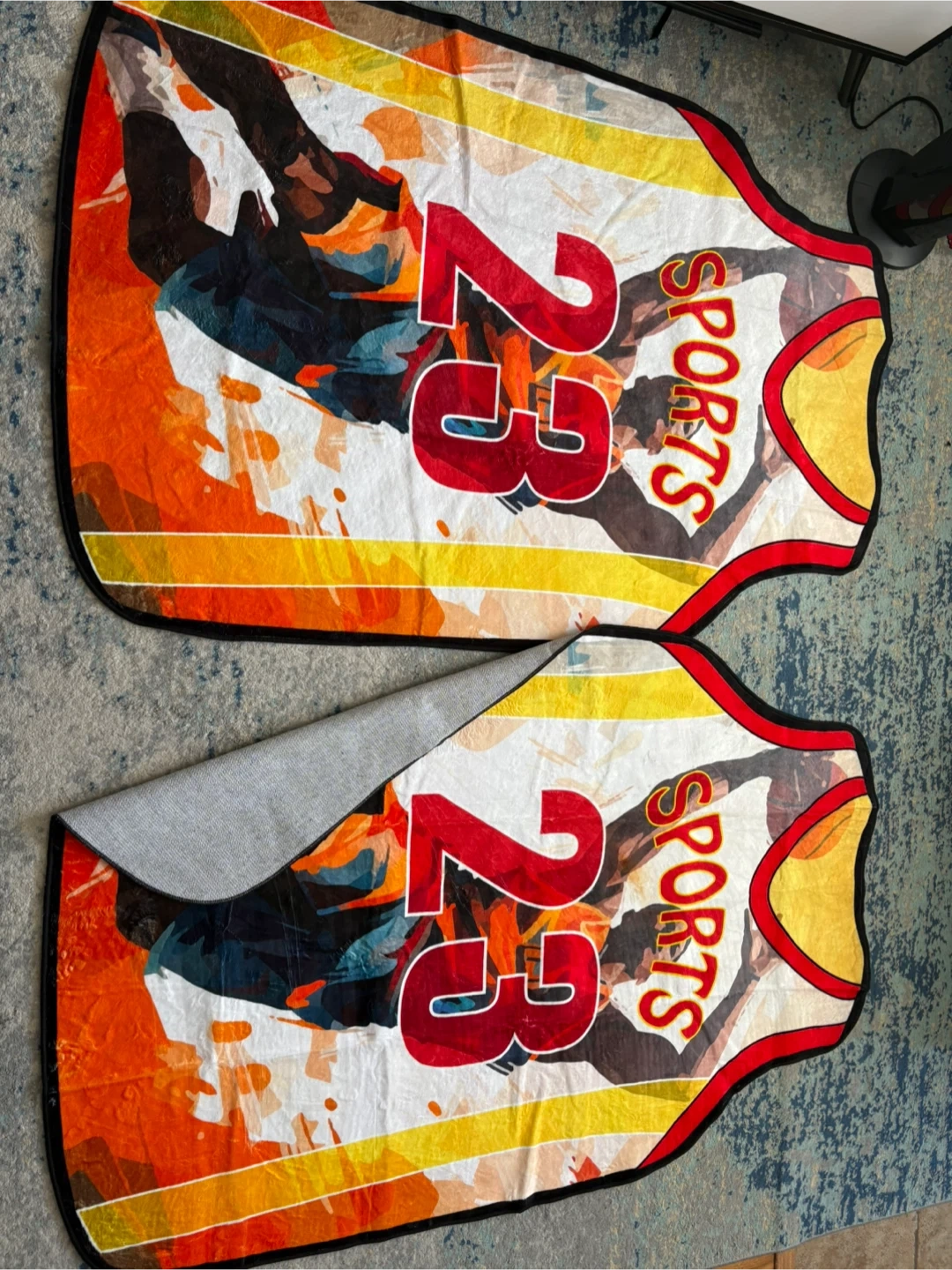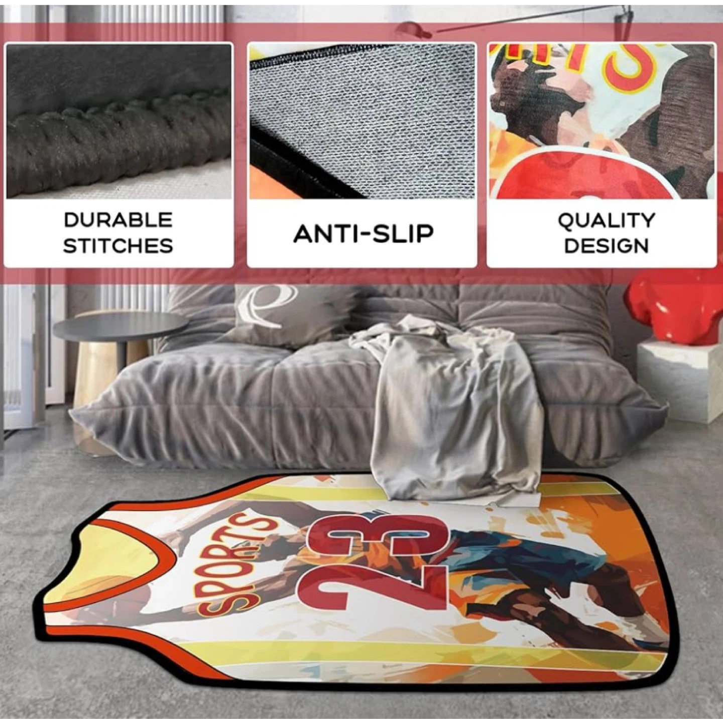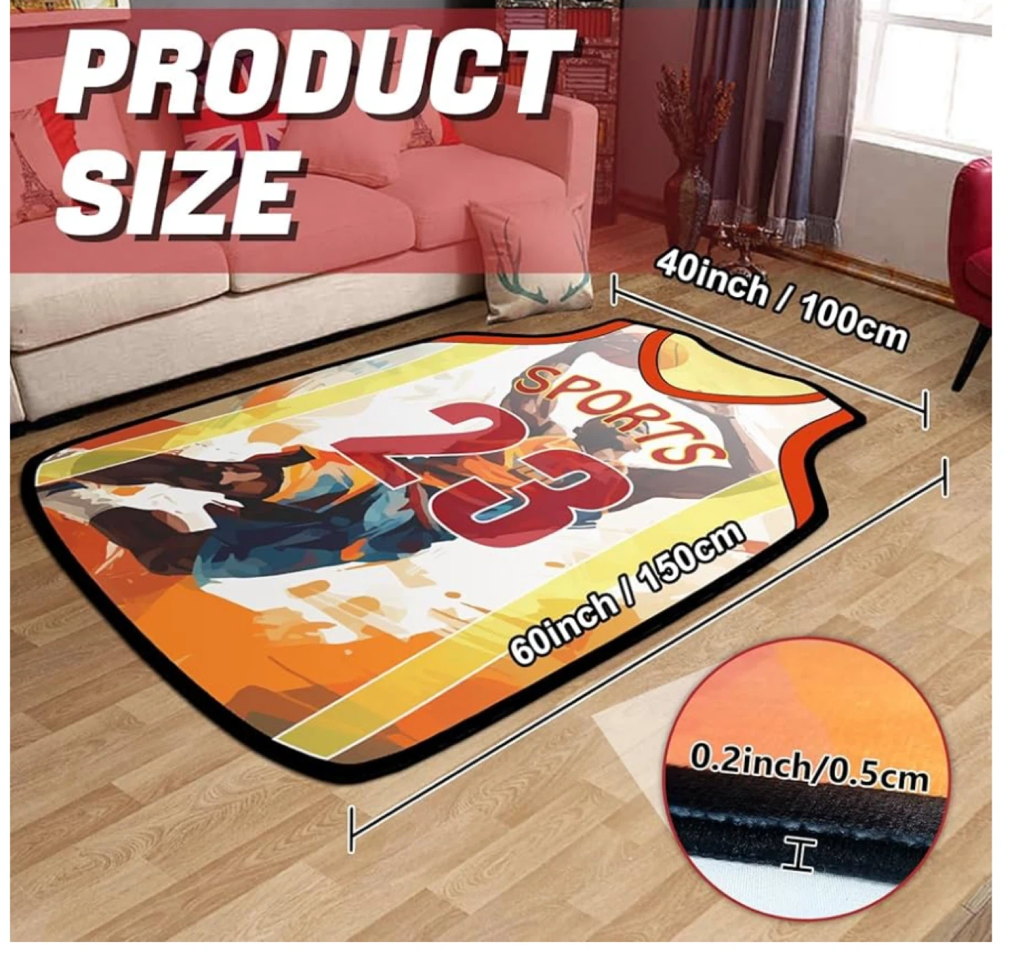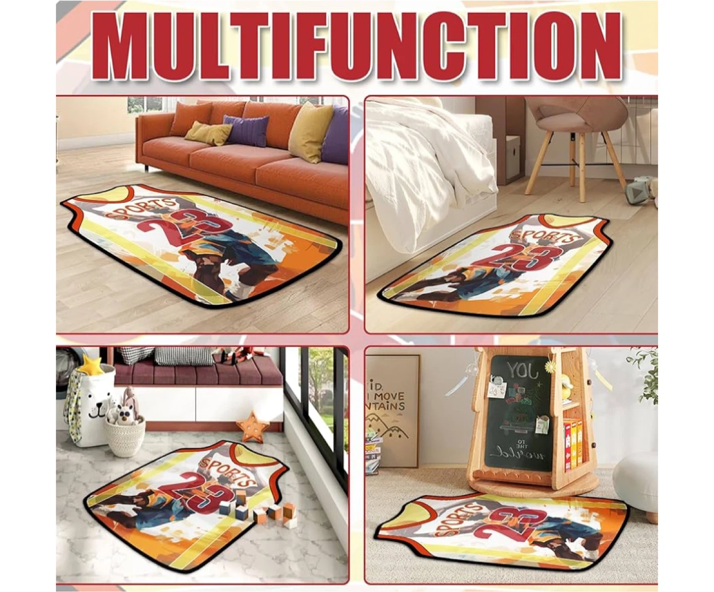 484Brand new basketball jersey-shaped Area Rugs for Entryway, 60”x40 Inches /. 5x3.4ft Jersey Shape Mat Indoor, Basketball Sports Anti-Slip Carpet For Bedroom Doorway, Comfort No. 23 Jersey Rug for Home Room Decor Perfect for men, teen or kids' room or any sports fan's space. Last piece No delivery Price is firm