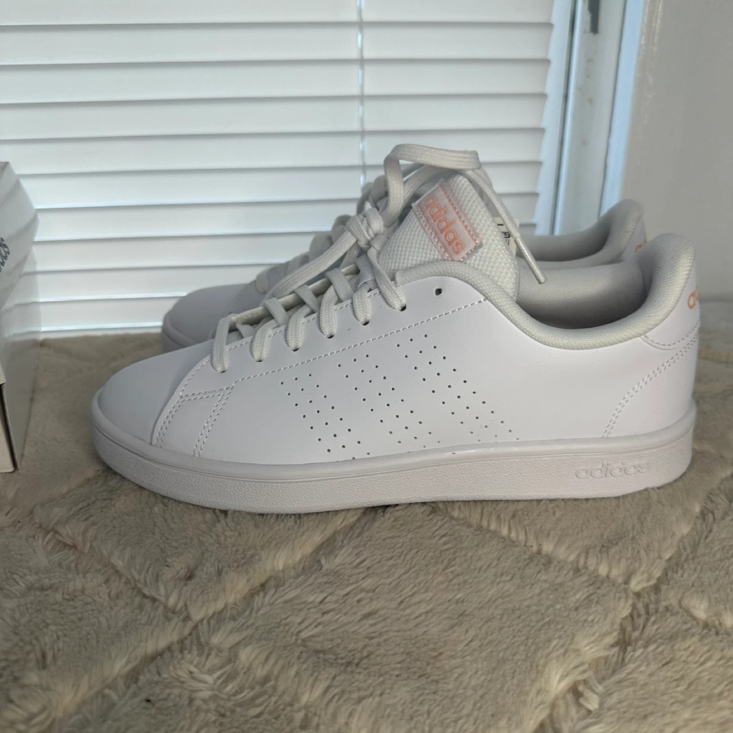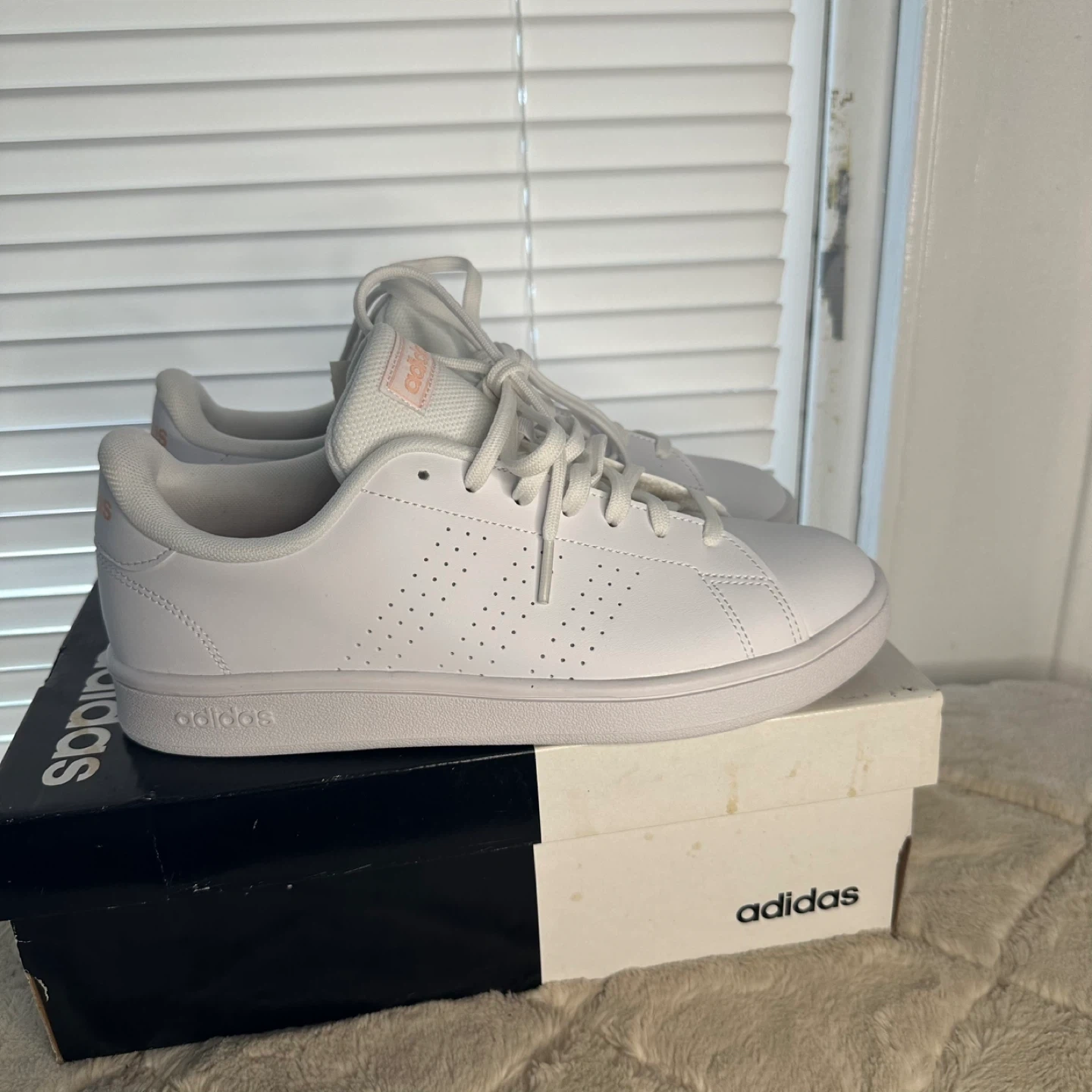 75Selling a pair of women's Adidas Advantage sneakers in white! These are in great condition and come with the original box. They're a classic, comfortable style that goes with everything