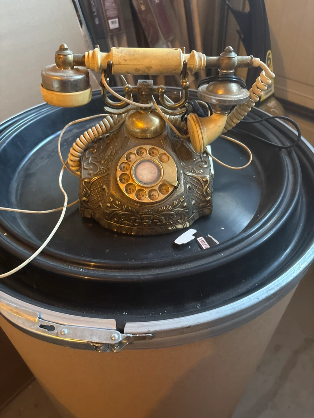 Selling a vintage-style rotary dial telephone. It has a classic design with ornate detailing and a traditional rotary dial. Perfect as a decorative piece or for adding a retro touch to your home!