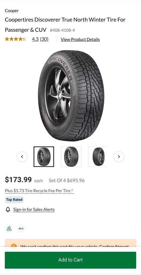 195/65R15 Cooper Discoverer True North winter tires on rims