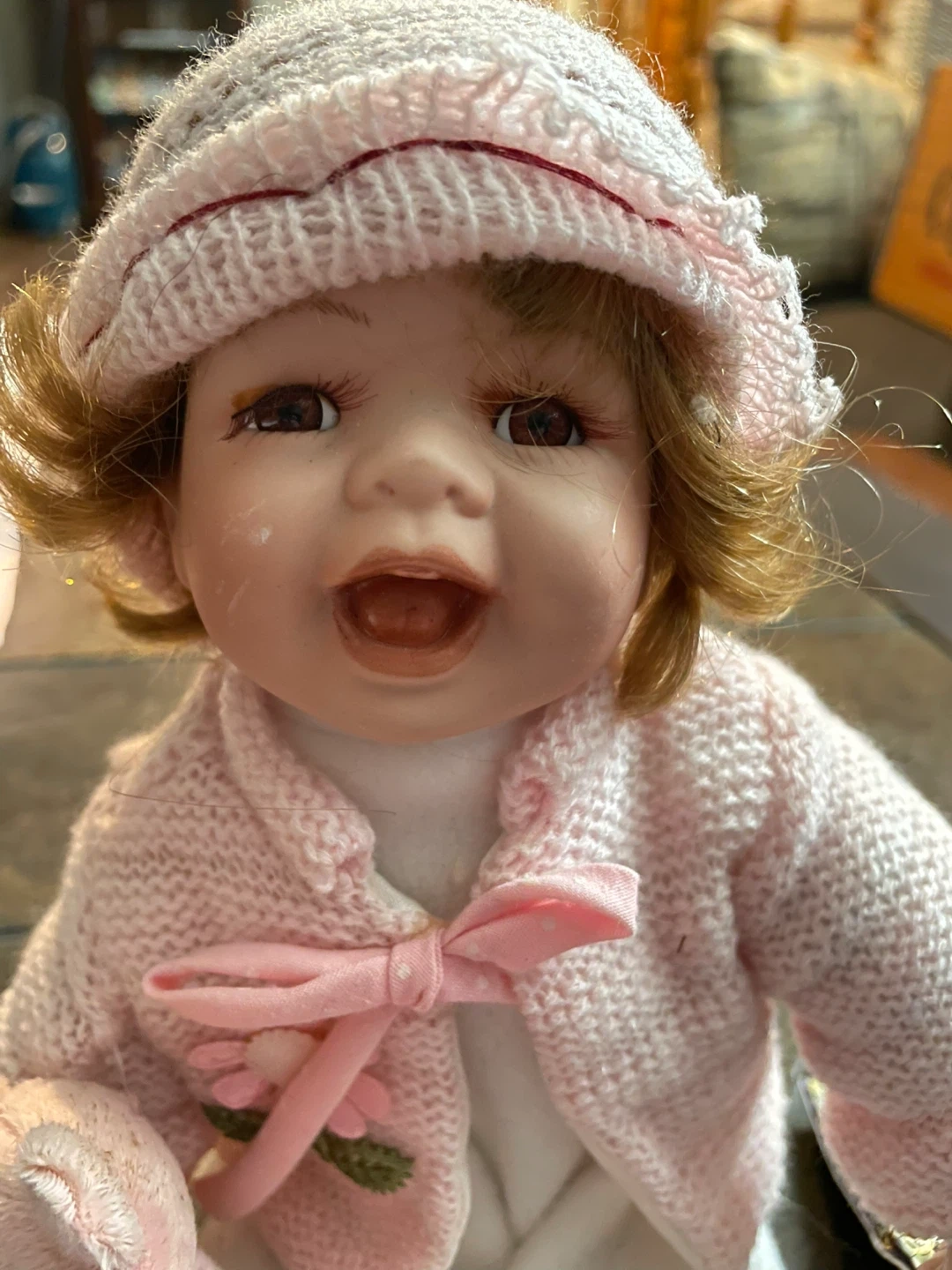 Selling a Rebecca Collection Limited Edition porcelain doll. This doll is a collector's item and is dressed in a sweet pink outfit. It would make a lovely addition to any doll collection! She plays music when wound up, but it plays very slowly.