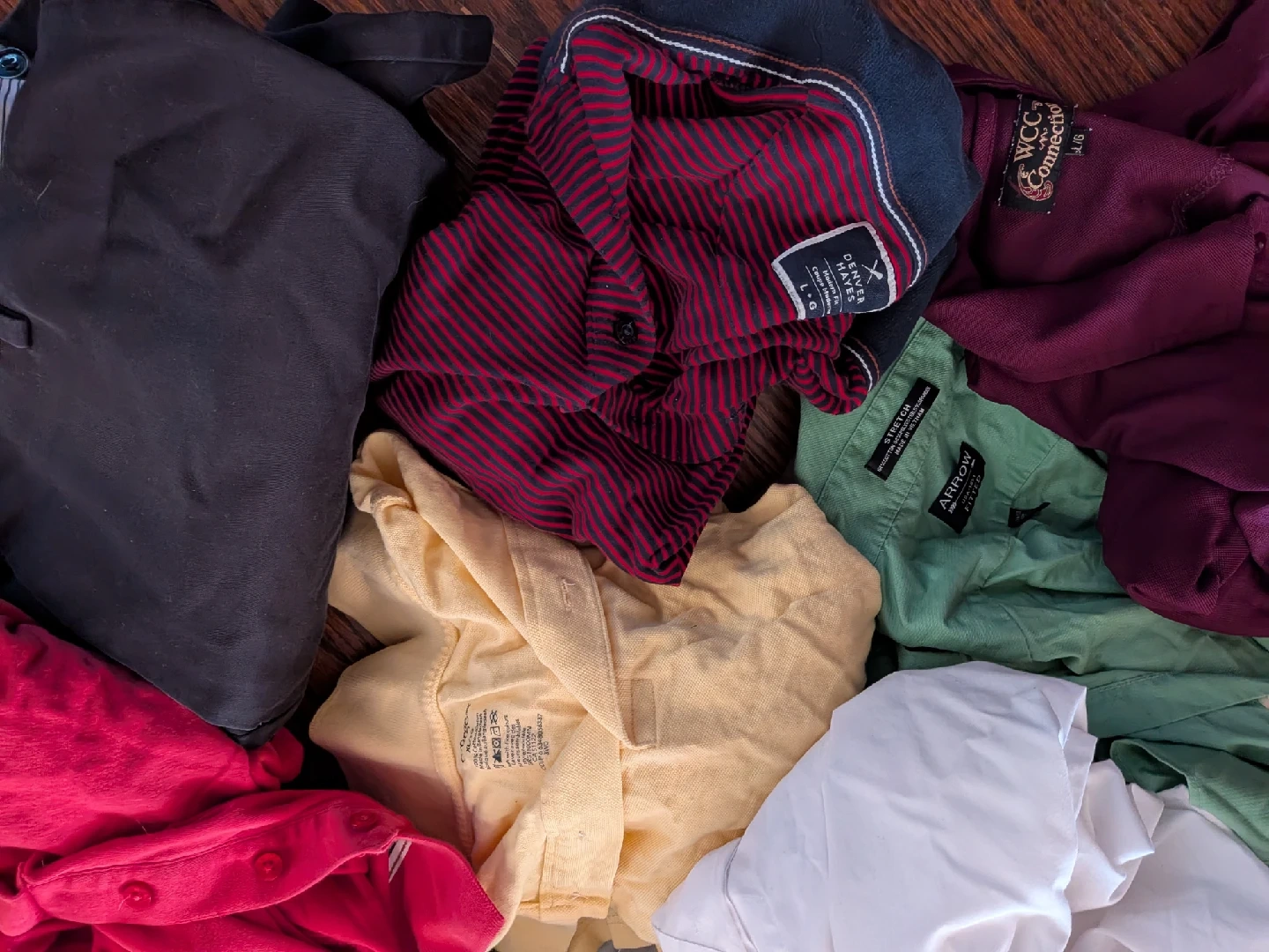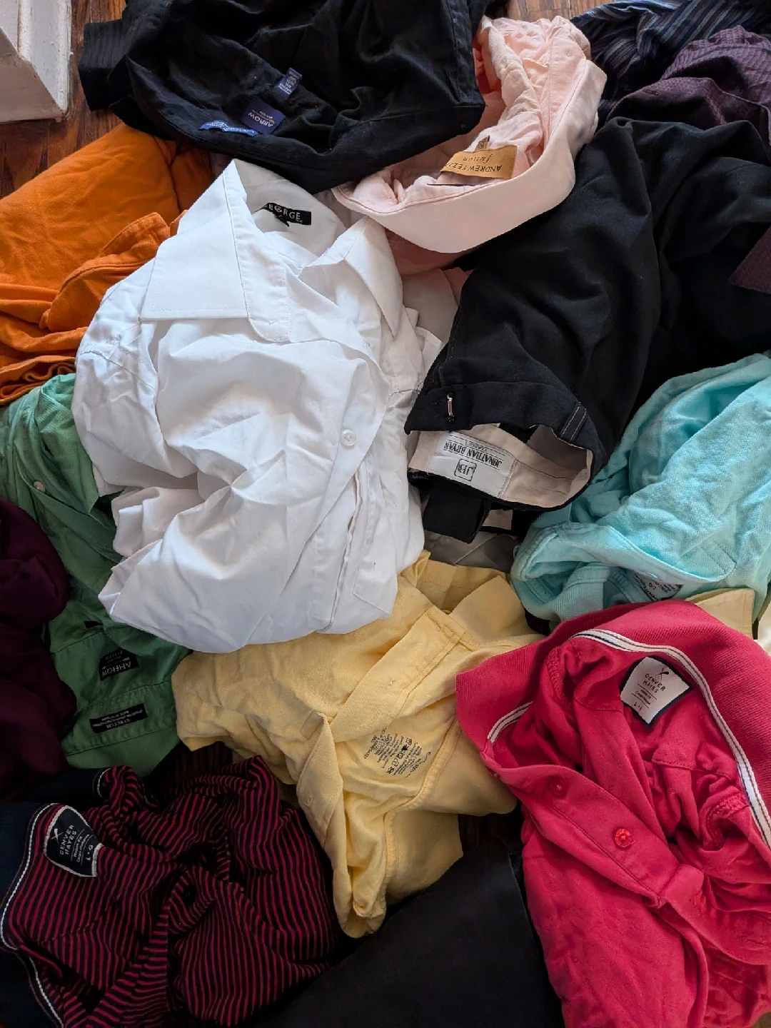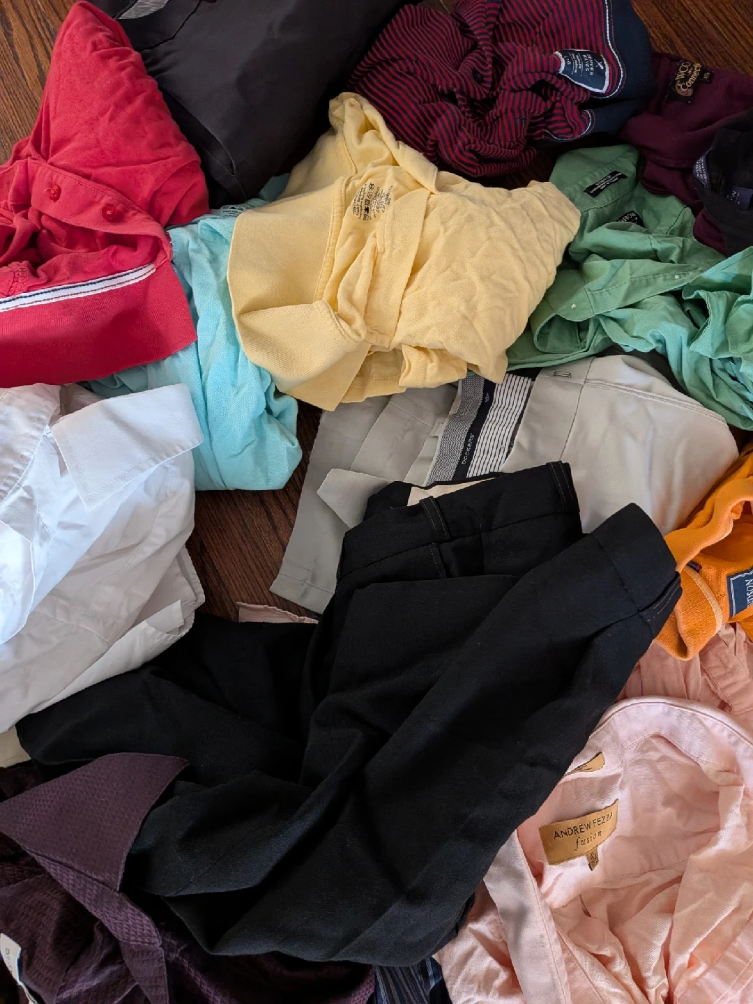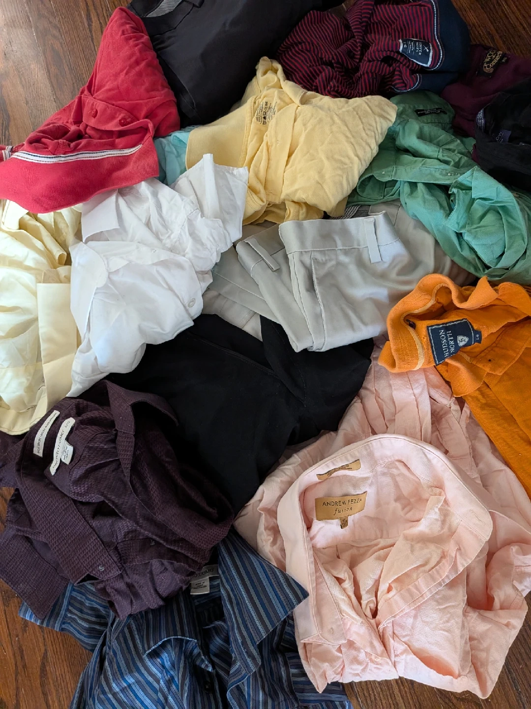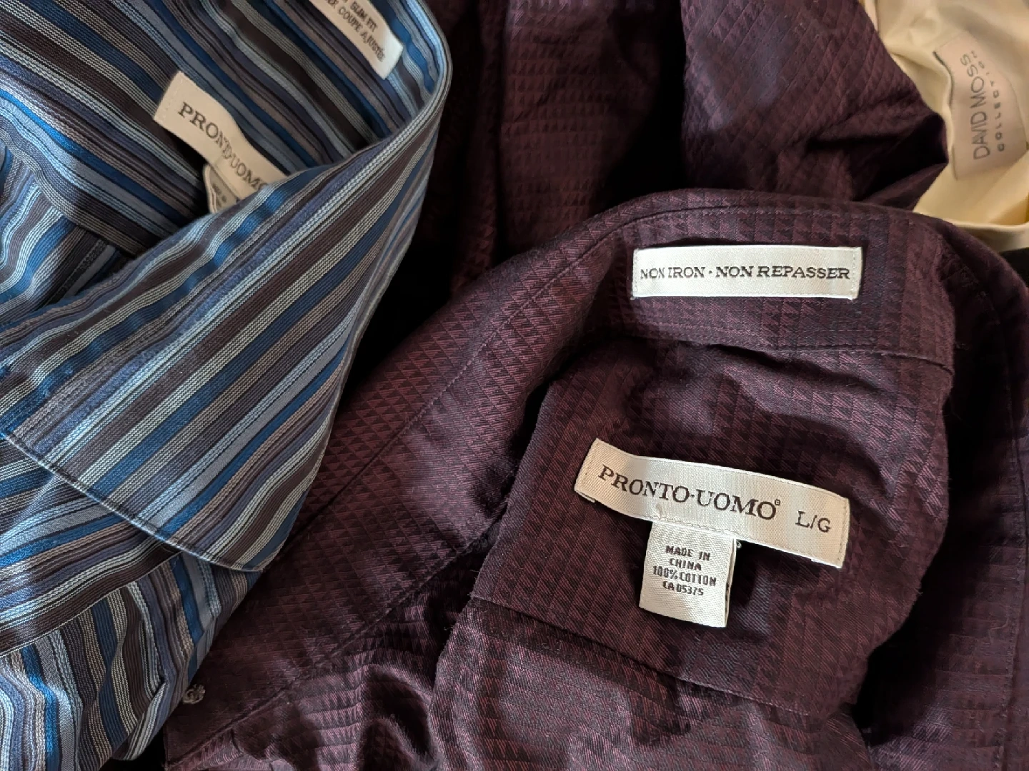 157Selling a bundle of men's office workwear in various colours and sizes! Brands include Pronto Uomo (L/G), Arrow (16 1/2 - 34/35), and George. Perfect for work or casual wear 3 pairs dress pants, 2 black, one grey/beige + Dockers 6 nice dress shirts sz 16.5 in black, white, green, 2 striped, yellow 4 golf shirts size large All good condition. Clean, just wrinkled, needs ironing Cash only, no etransfers Location: Etobicoke. Rathburn Rd and Renforth dr. Etobicoke Olympium nearby. I cannot meet outside this area