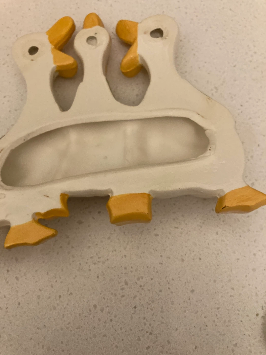 This a charming vintage ceramic duck wall decor piece! It features three ducks in a row, perfect for adding a touch of whimsy to any room.