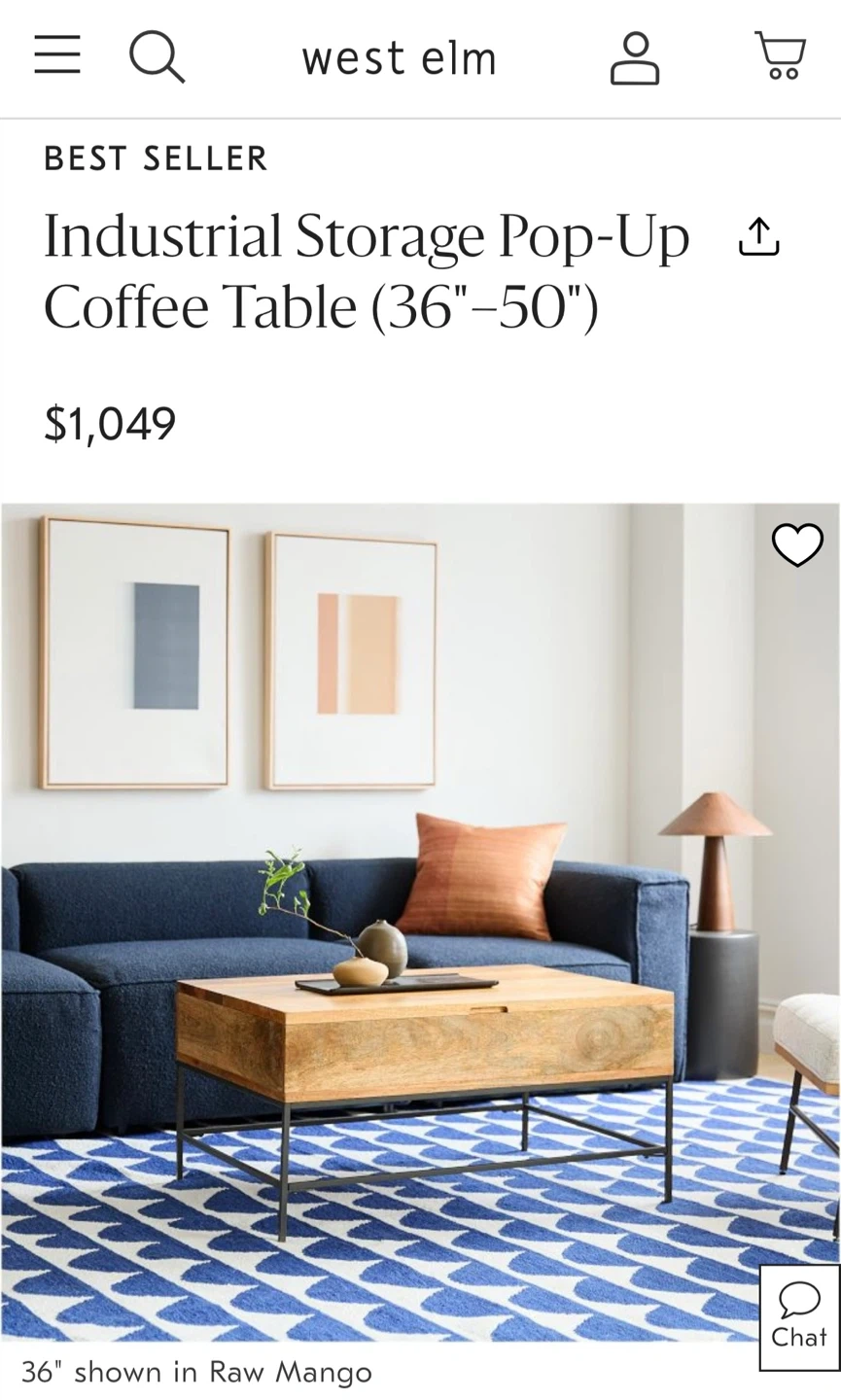 Looking to sell a West Elm Industrial Storage Pop-Up Coffee Table. The size is between 36 inches in natural mango wood. Originally bought for $1,049