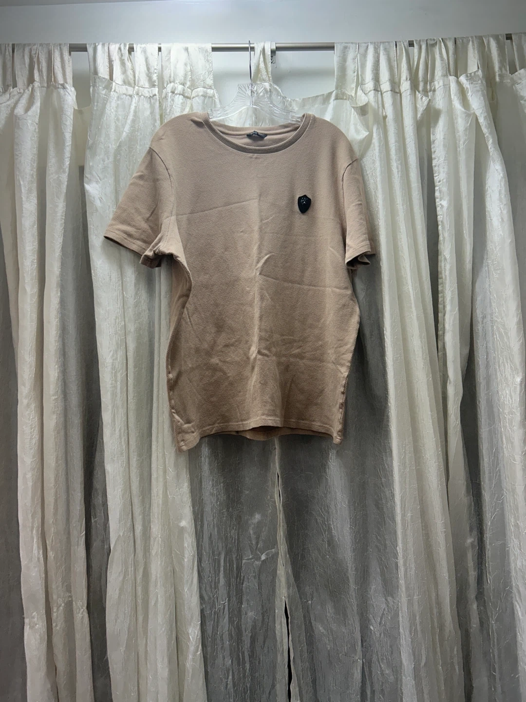 A beige t-shirt in good condition. It's a neutral colour, so it's easy to match with anything!