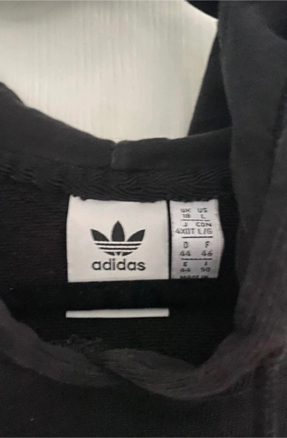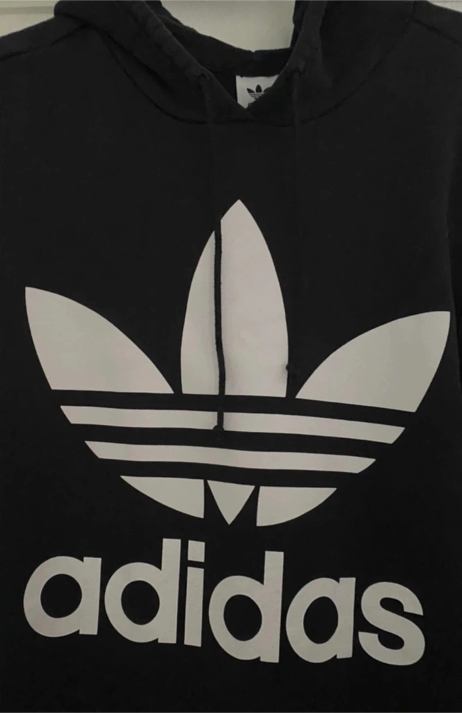 Selling a black Adidas hoodie in size L. It features the iconic Adidas logo on the front. It's in great condition and ready for a new home!