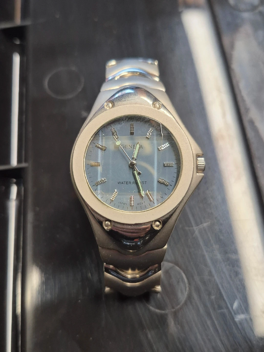 98Selling a Geneva water resistant watch. It has a stainless steel back and Japan movement quartz.