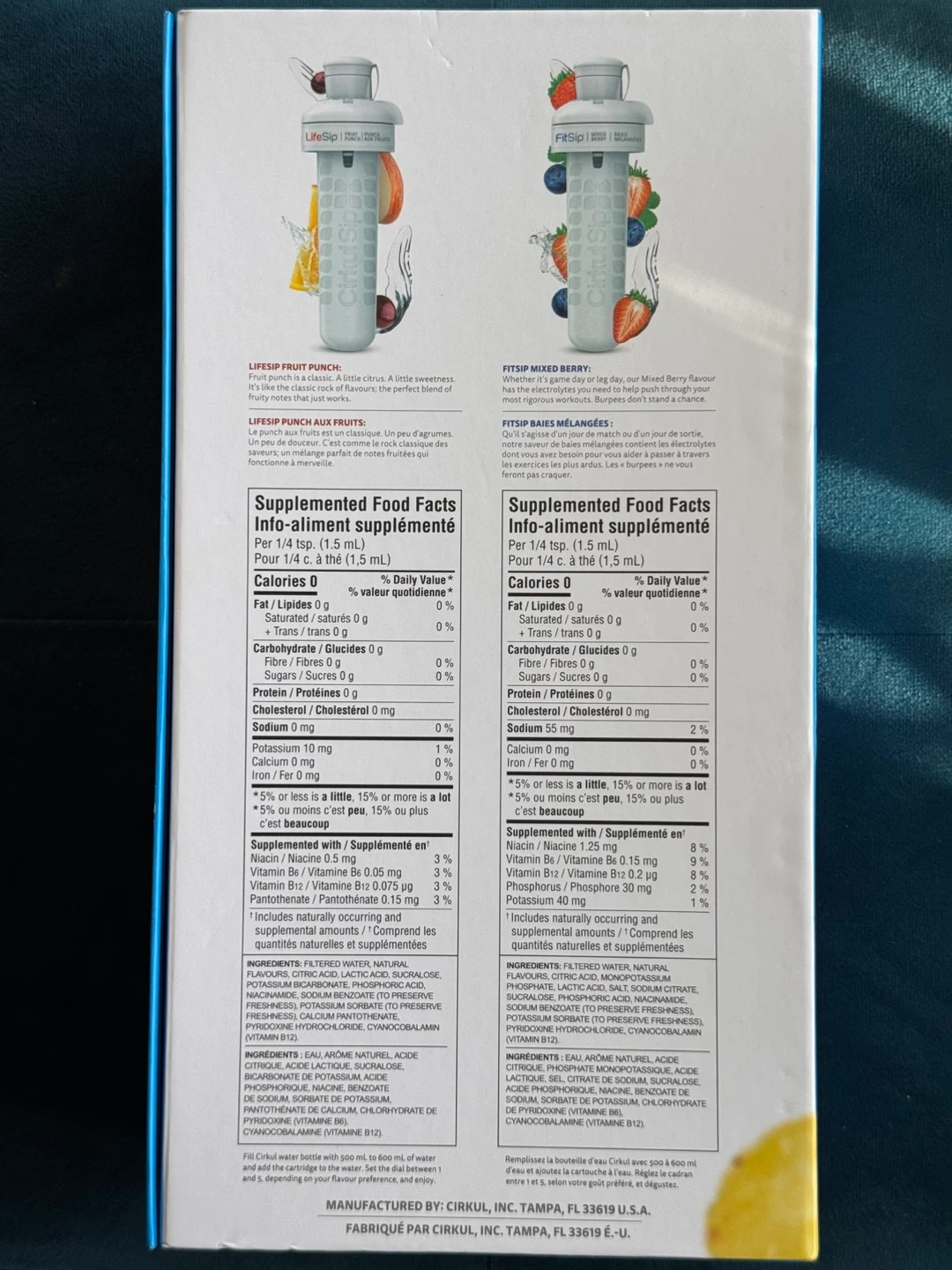 β’ 2 SIPβ’ cartridges: LifeSip (fruit flavor) + FitSip (berry flavor)
