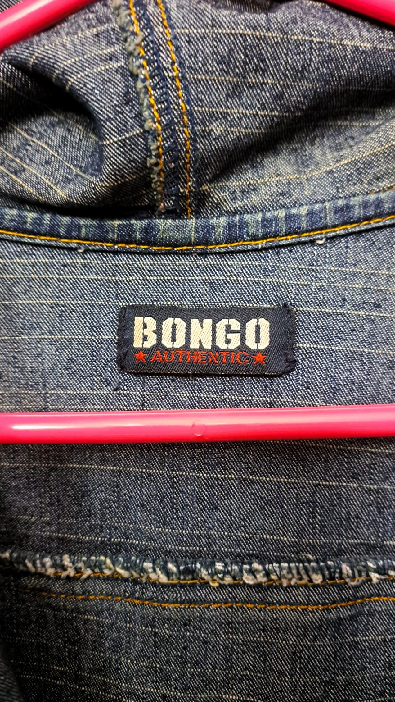 Bongo Authentic is an excellent choice for those seeking a denim jacket that is both nostalgic and trendy. This Y2K Bongo denim jacket is popular among those who appreciate nostalgic fashion. Made of partially washed denim, it features a hood, pocket detailing, and metal logo buttons. Gently worn and cared for beautifully. Excellent condition.