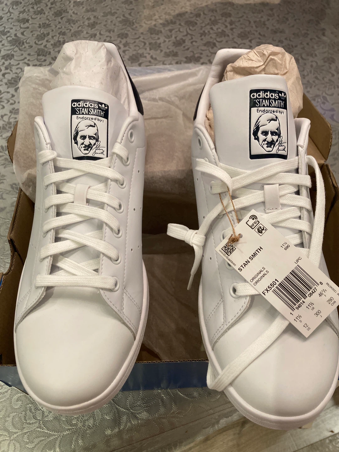 Selling a brand new pair of Adidas Stan Smith shoes in white! They are a US size 12 and come with the original box. Classic and clean, these shoes are ready for a new home