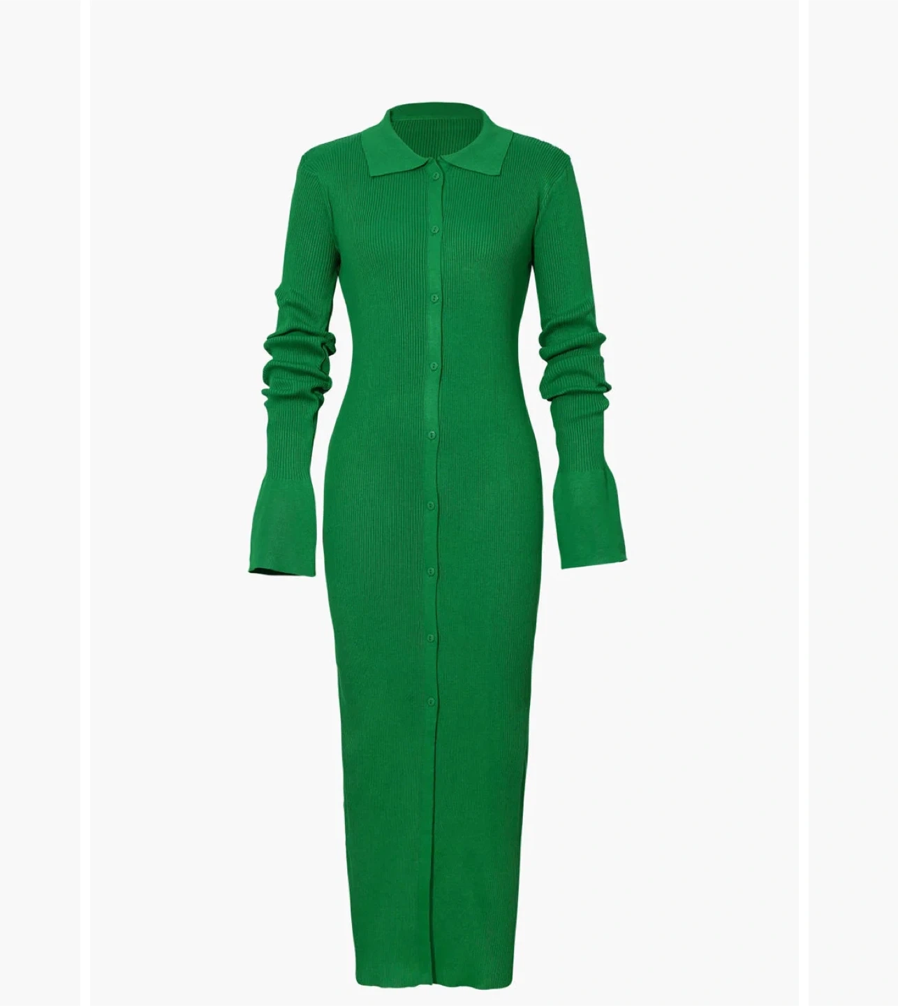 Stylish ribbed knit midi dress in vibrant, eye-catching green. Material is comfortable and has a stretch to it. Is about 48” from neck to bottom of dress. In great condition and ready for a new home! Fits M/L but tag says L.