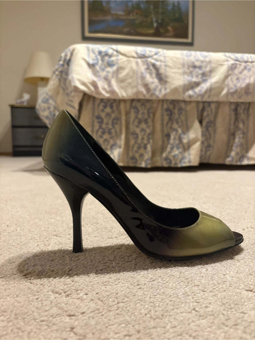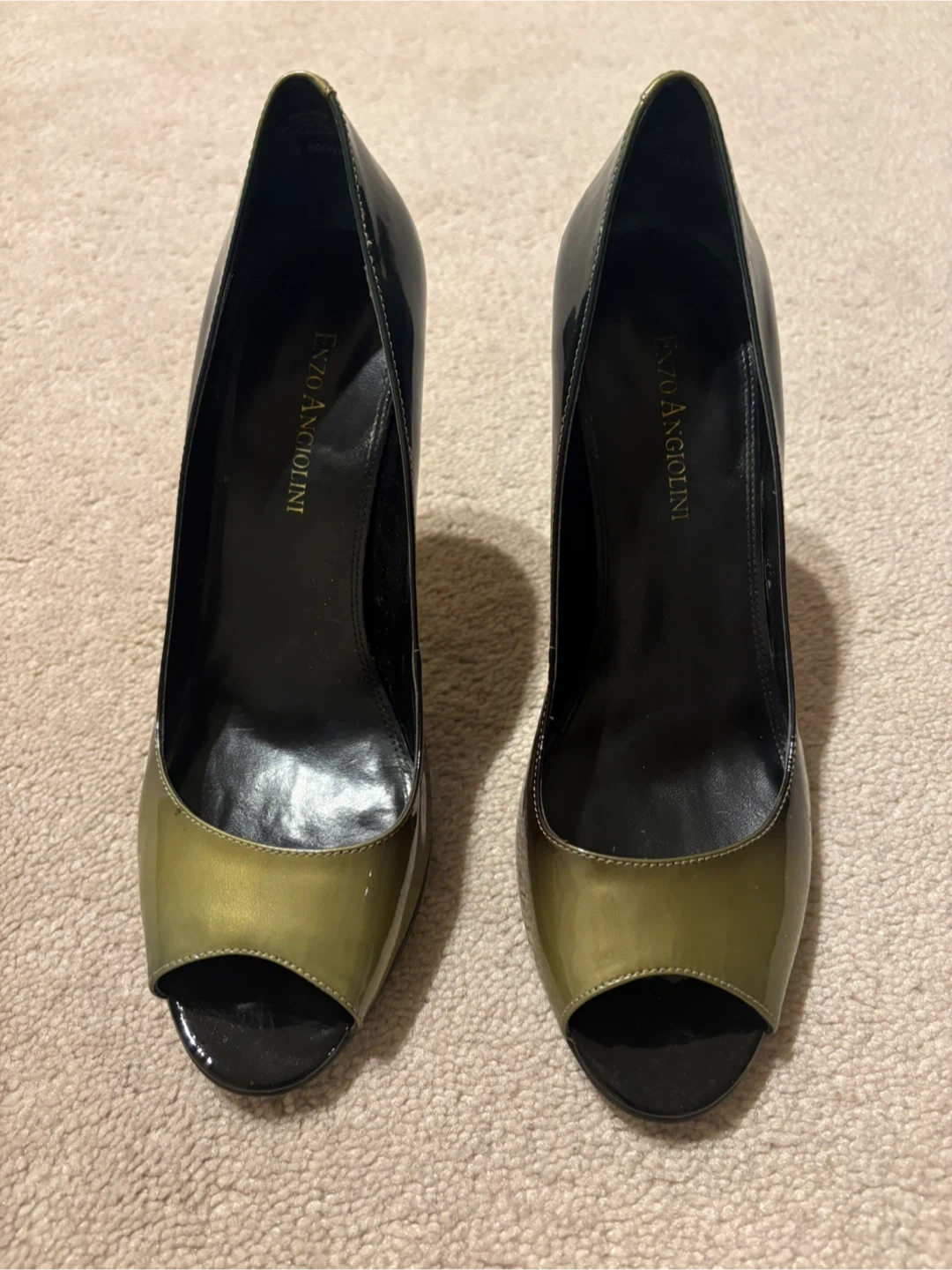 These are a pair of Enzo Angiolini heels in a stylish black and olive colour combination. They are a size 7 1/2. Perfect for adding a touch of elegance to any outfit! Pickup from Calgary NW. Cash only.