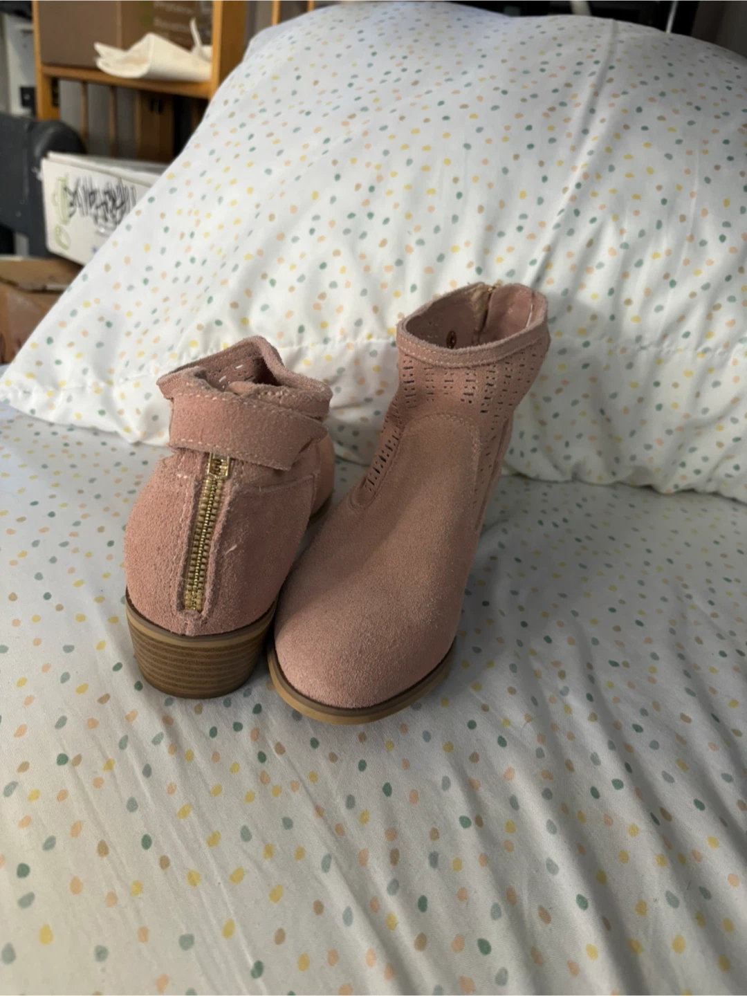 Selling a pair of cute pink suede ankle boots! They are a size 6.5 and in great condition. Perfect for adding a touch of colour to your outfit!