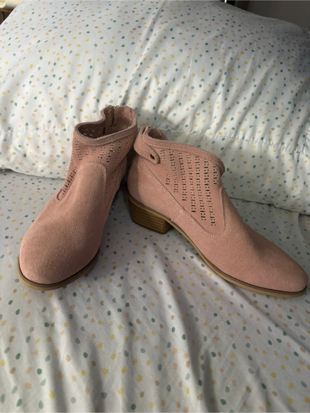 Pink Suede Ankle Boots - Size 6.5