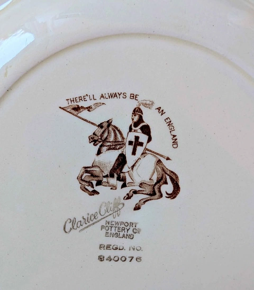 Vintage New Port Pottery England, Clarice Cliff Windsor Castle Plate, no. 840076. It is 11 " wide and in very good condition and has no chips or cracks. His famous, " There will always be an England" is inscribed on the back. North St Catharines pickup, cash only please