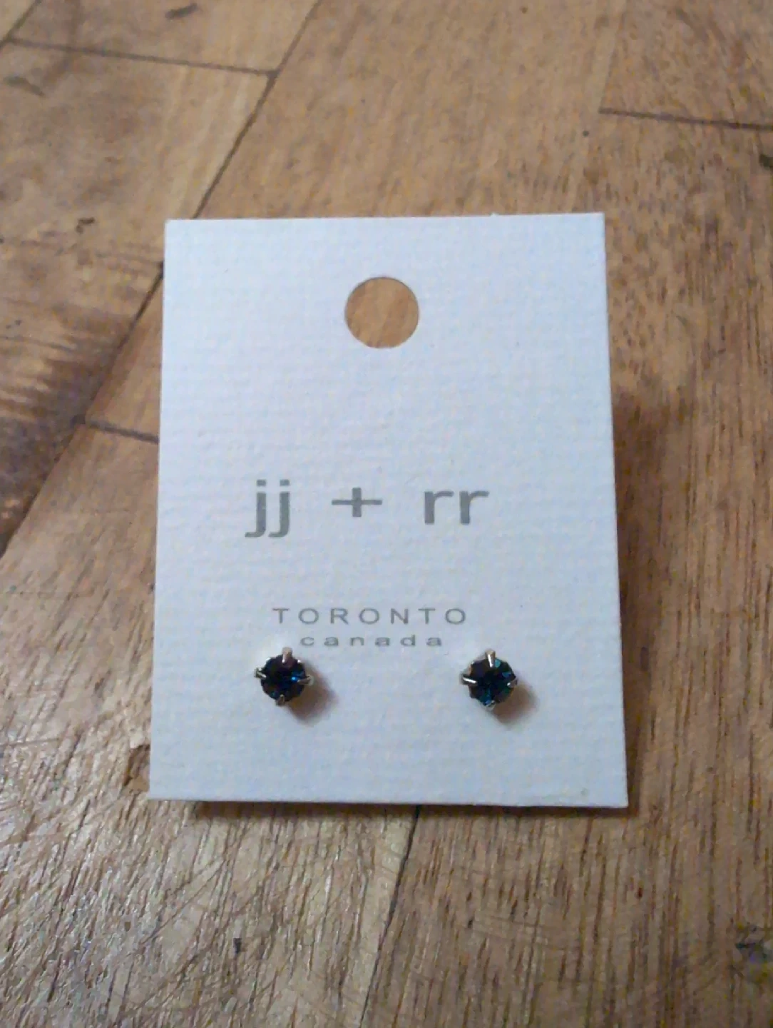 1000+A pair of jj + rr earrings from Toronto! A cute and simple silver tone, blue stone design, perfect for everyday wear.