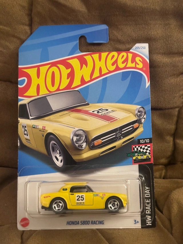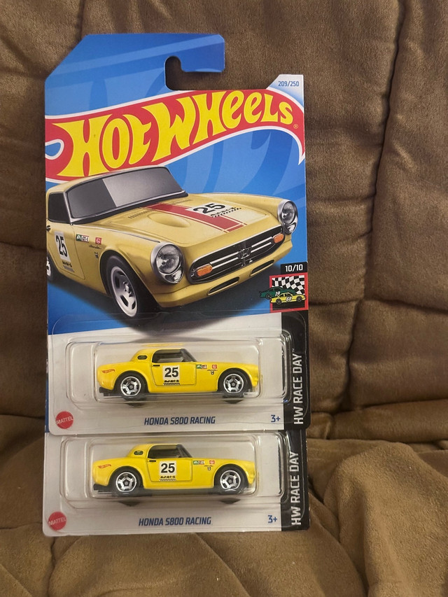 Up for grabs are two new Hot Wheels Honda S800 Racing diecast cars. They are in mint condition, still sealed in their original packaging, ready to be added to your collection or to start a new adventure on your imaginary racetracks. * Diecast metal construction * Detailed design * Collector's item These little speedsters are just waiting for a new home! If the ad is still up, they're still available!