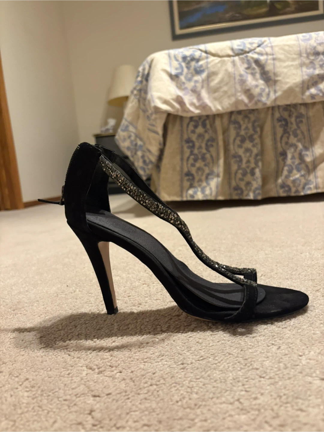 Selling a pair of black heels in size 7.5. They feature a stylish design with embellished straps. Perfect for a night out or special occasion! Pickup from Calgary NW. Cash only.