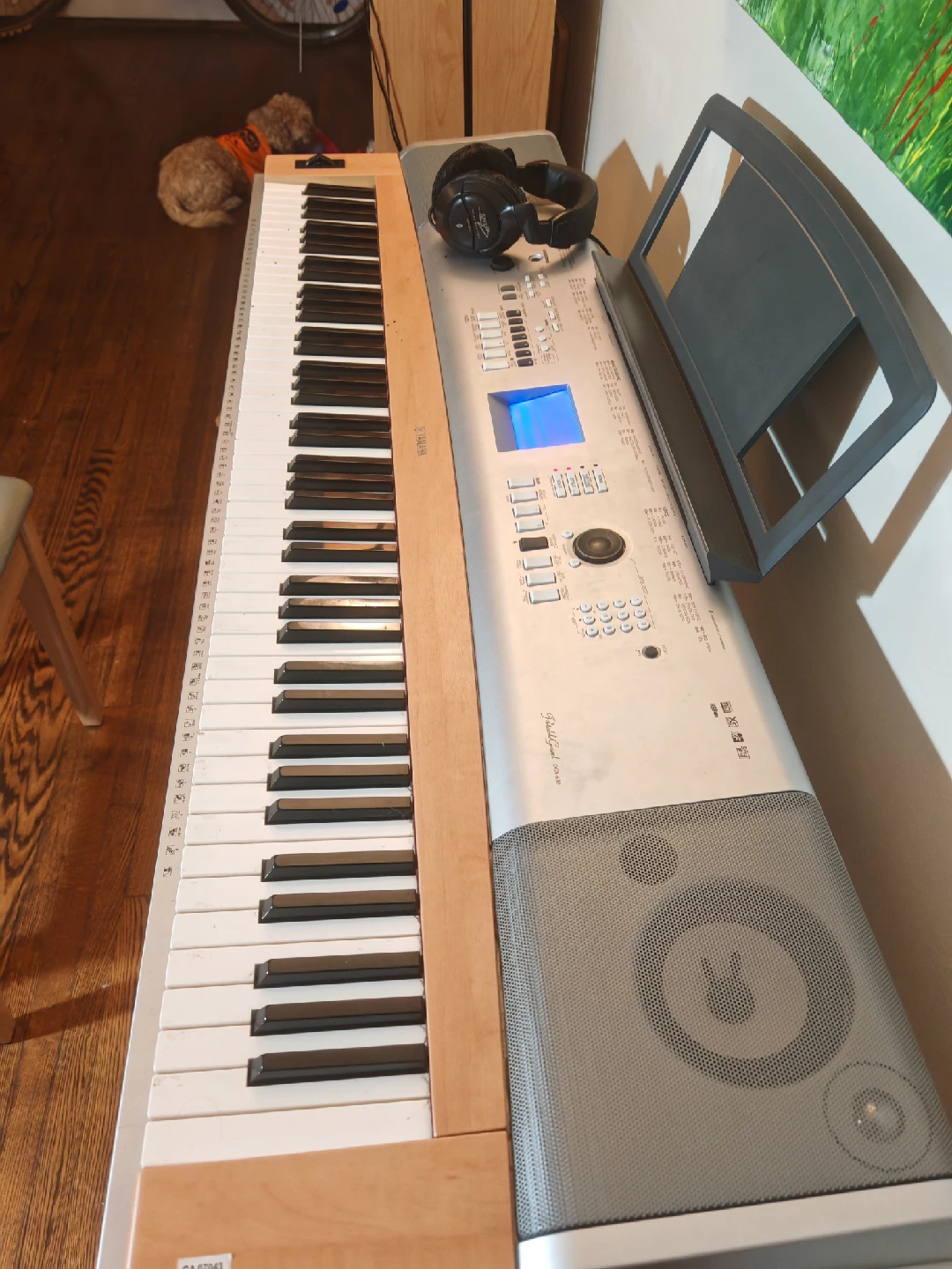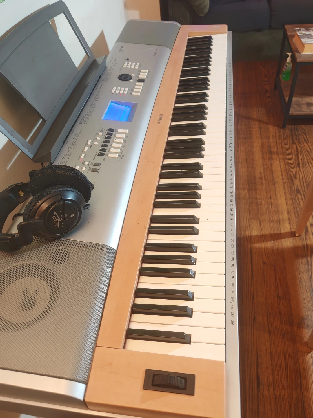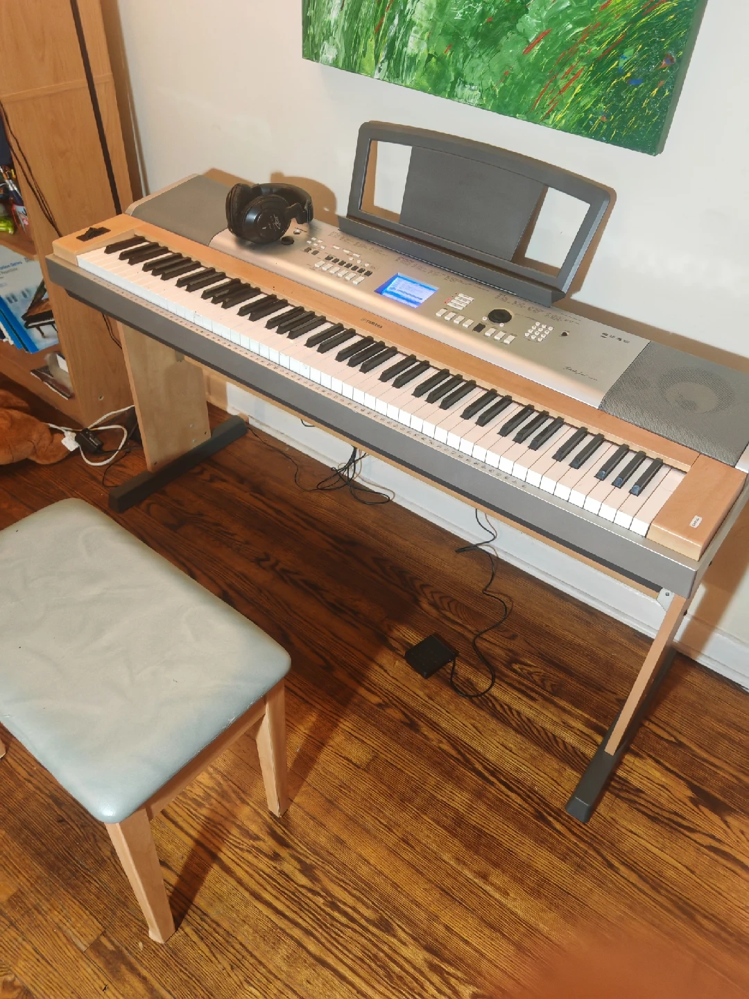 Yamaha Grand Piano keyboard DGX-630 with 88 fully weighted keys in excellent condition. It comes with stand, music rest, sustain pedal, power adapter, headphones and bench.