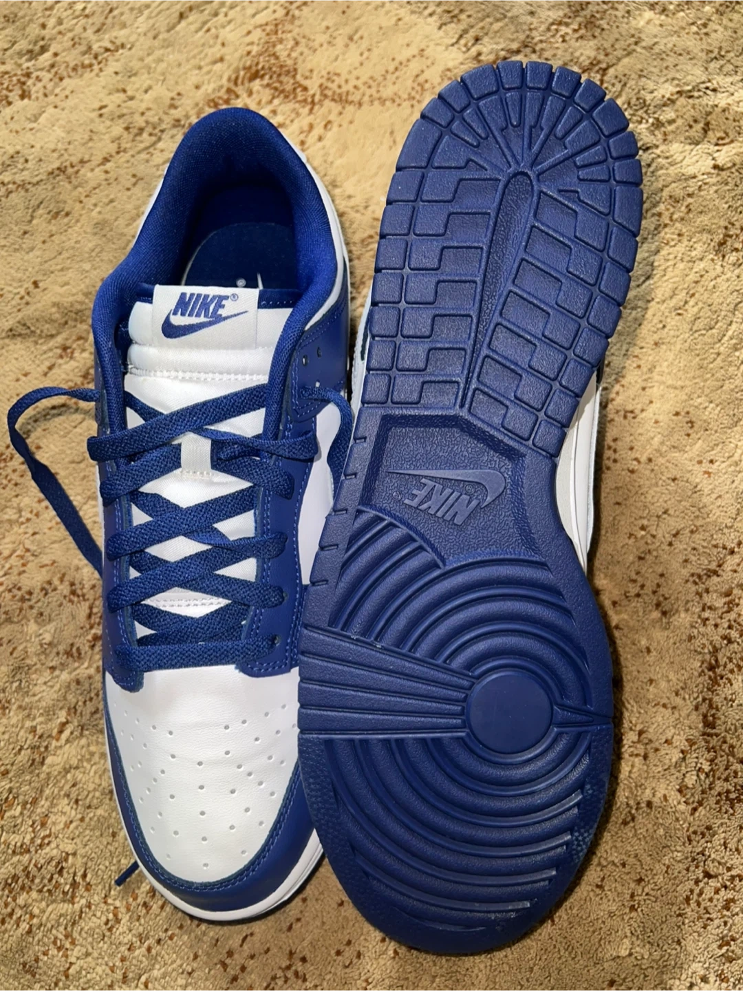 Nike Dunk Low in a white and royal blue colourway. These shoes are in great condition and ready for a new home! The size is US 12 / EUR 46.