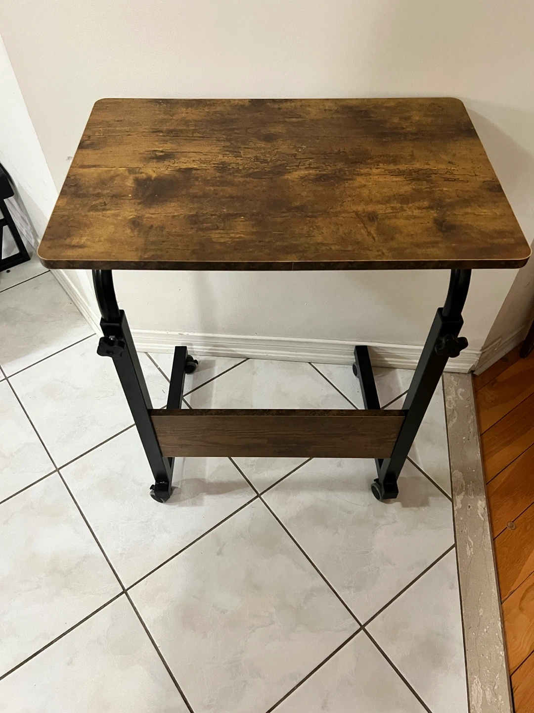 143Selling a barely used rolling laptop desk with adjustable height! The desk is on wheels, making it easy to move around your space. Dimensions in the picture taken from Amazon. Retail $90 so price is firm. There are no imperfections.