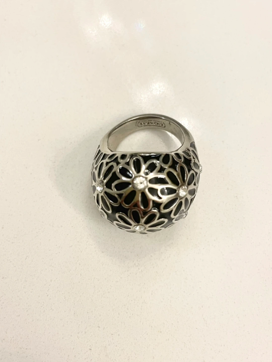 Stunning Vintage Coach Dome Ring with flowers design and crystals.