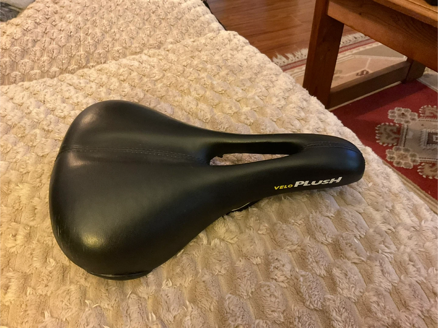 Selling a Velo Plush bike seat. It's in good condition and ready for your next ride! The seat is designed for comfort, making those longer bike trips much more enjoyable. It has some signs of use, but is still very functional.