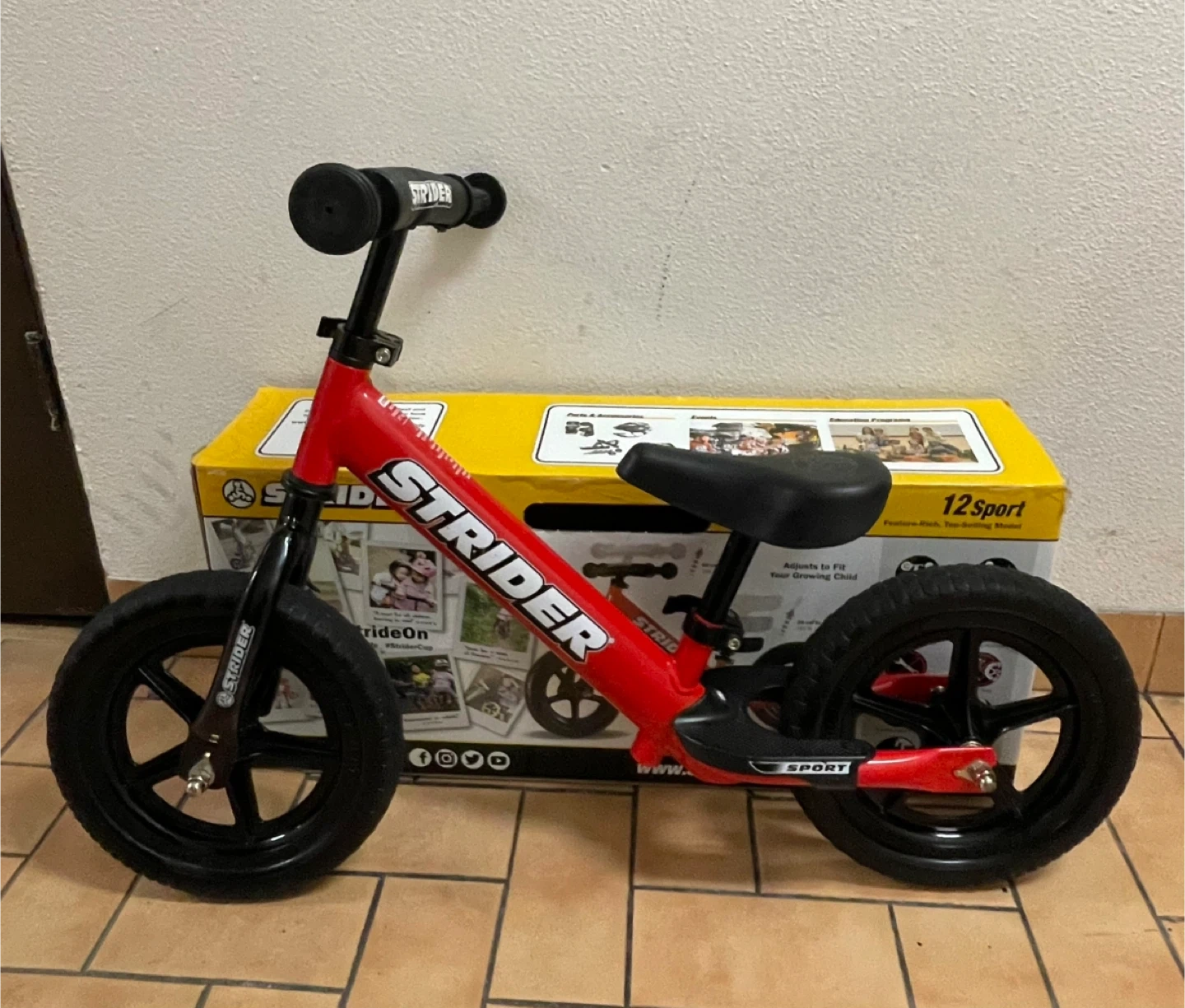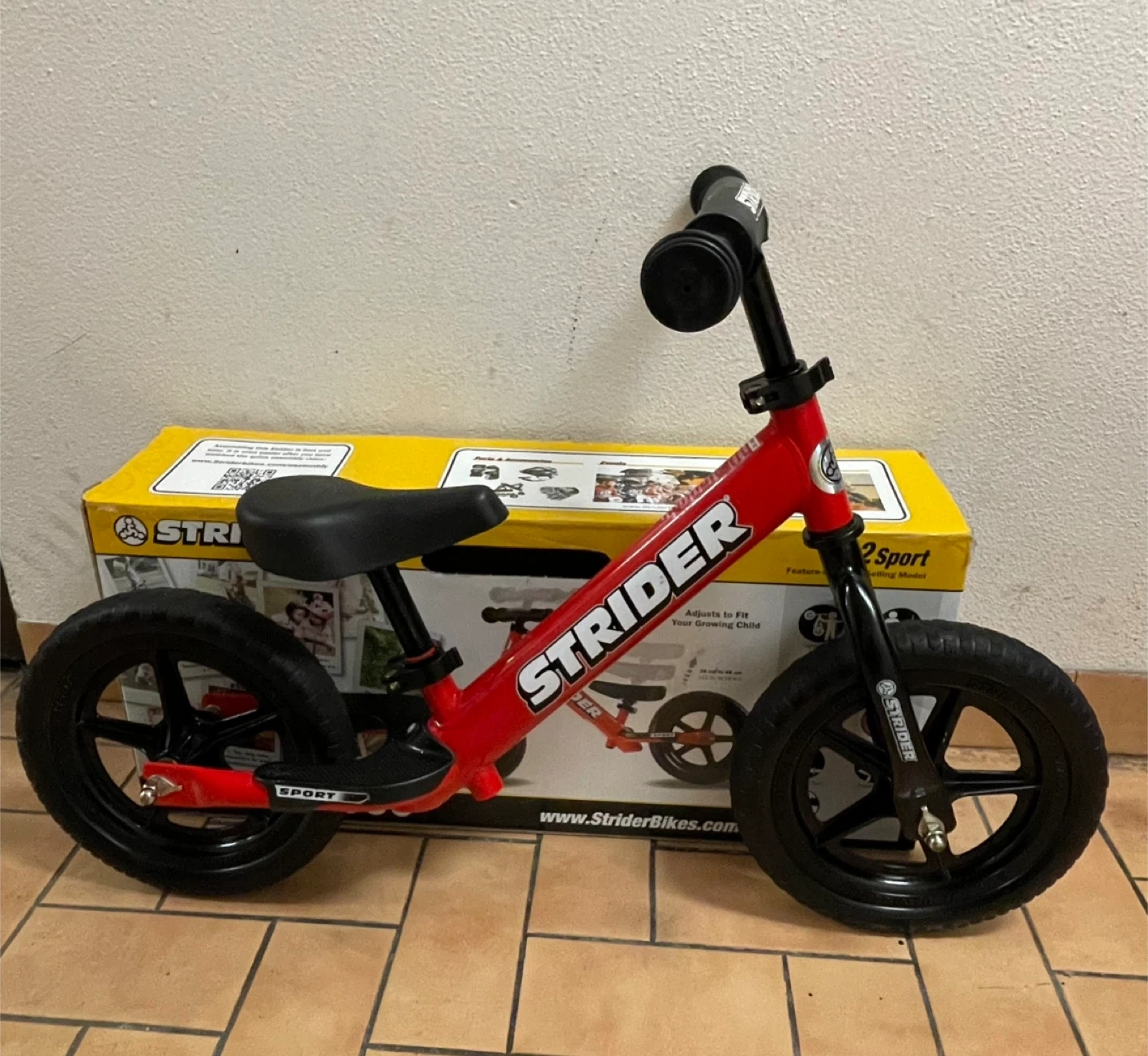 Selling a Strider 12 Sport Balance Bike in red! This bike is perfect for helping your little one develop their balance and coordination. It's in great condition and comes with the original box. Get your child riding with confidence!