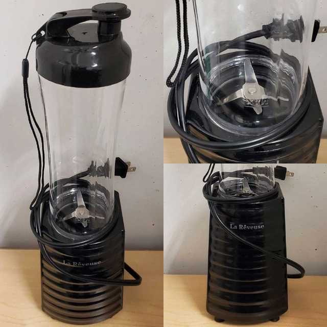 ➡️ Selling a La Reveuse portable travel sports blender in black! It's in great condition and ready to make your smoothies on the go. The bottle is 18oz and BPA free. It's a convenient size for taking to the gym or work! And additional cap makes your smoothie on the go