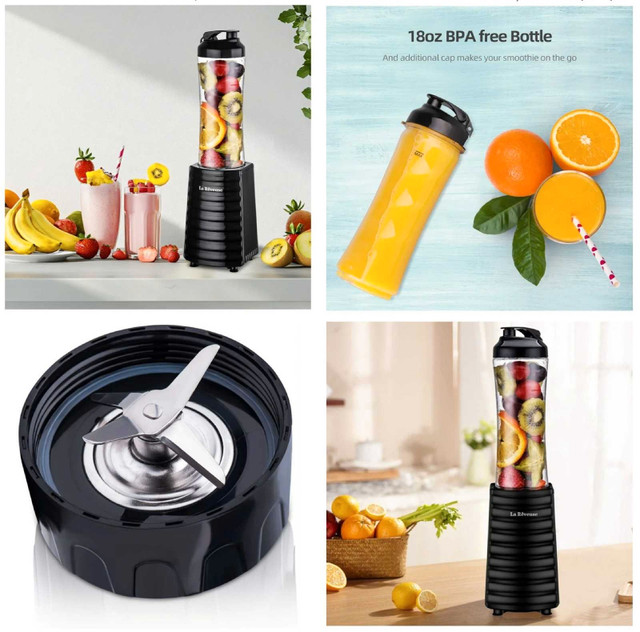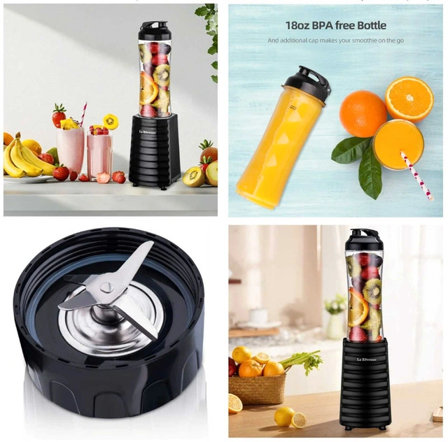La Reveuse Smoothies Blender Personal Size 300 Watts with18 oz BPA Free Portable Travel Sports Bottle (Black)