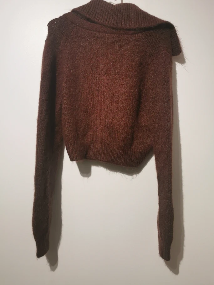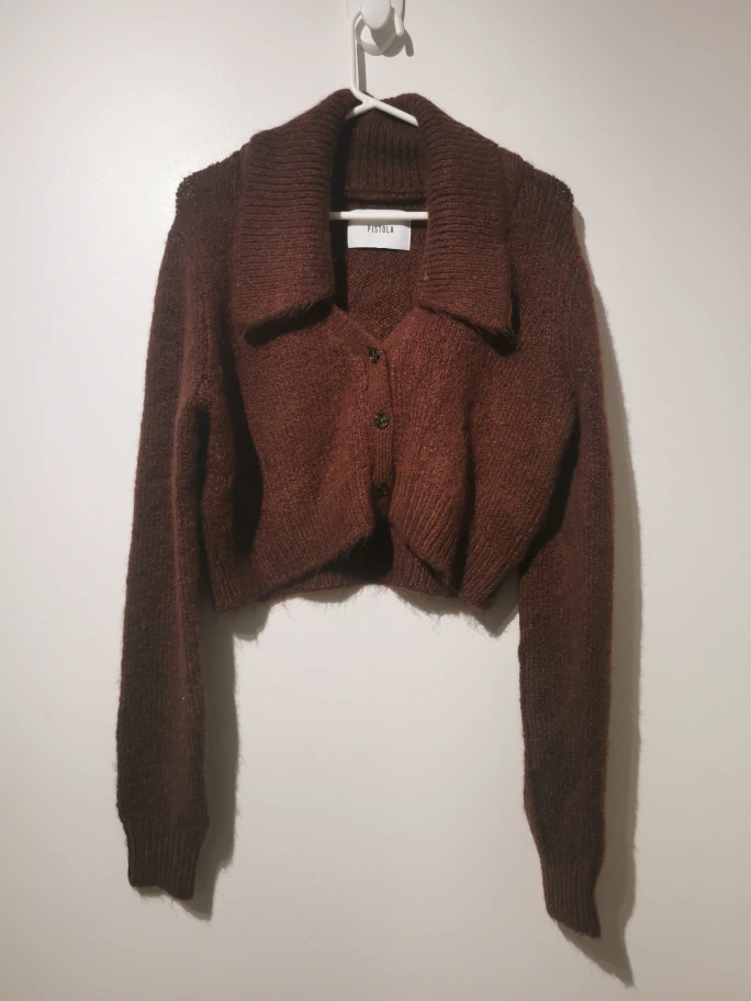 Selling a Pistola Lenore Collard Cropped Cardigan in a beautiful burgundy colour! It's in great condition and ready for a new home. The cropped style is super trendy and perfect for layering. It has a unique collared design that adds a touch of sophistication to any outfit. Don't miss out on this stylish piece!