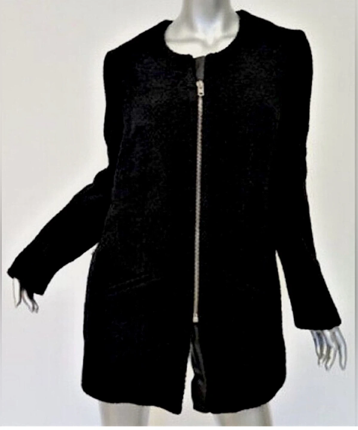 32IRO Lined Wool Boucle Coat Black with Leather Trim & Silver Hardware Size: 2 (small) Great condition Perfect for layering or wearing on its own!