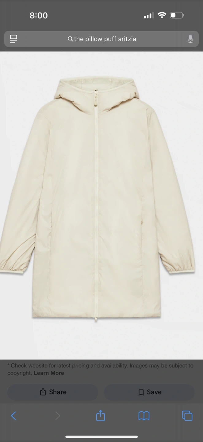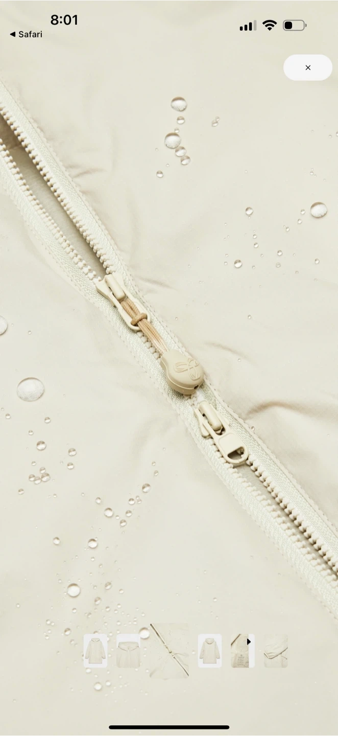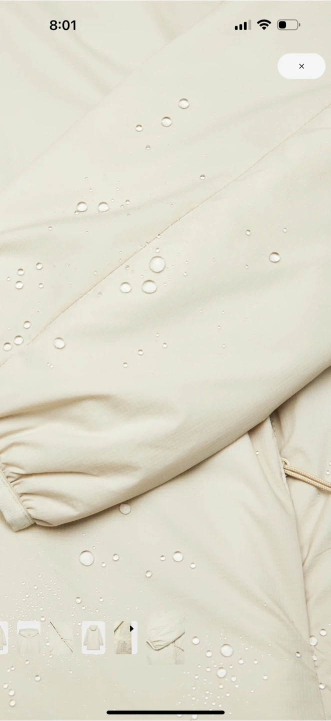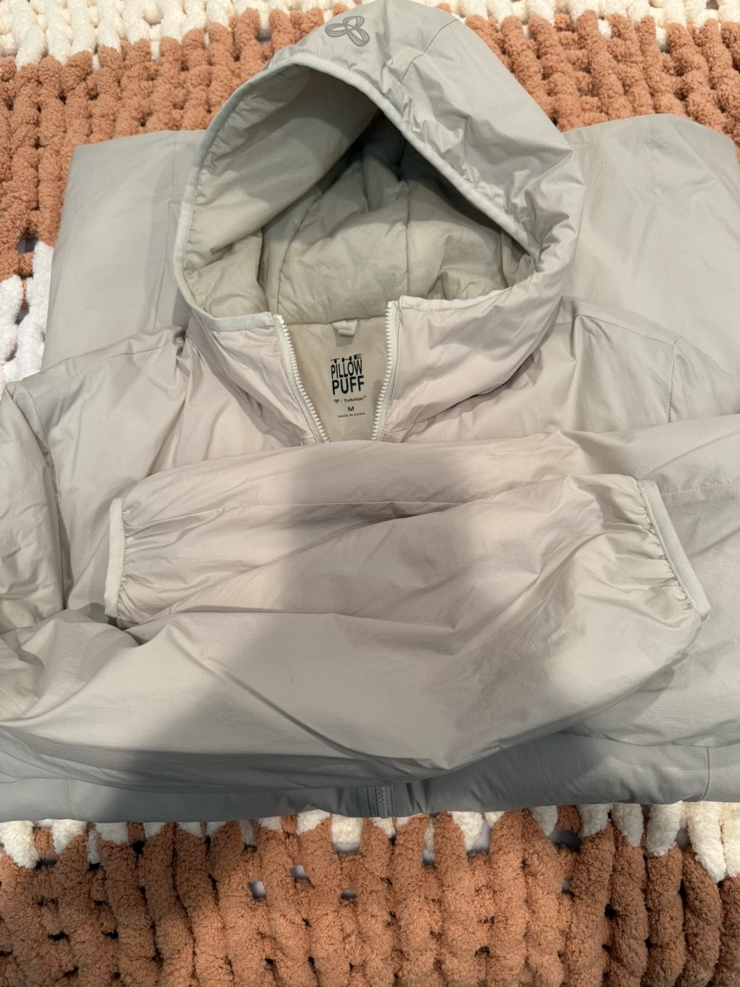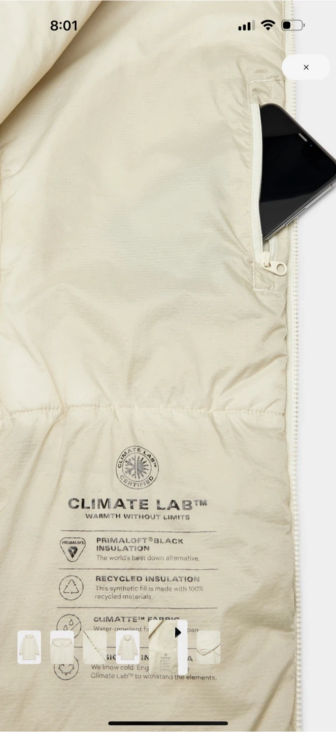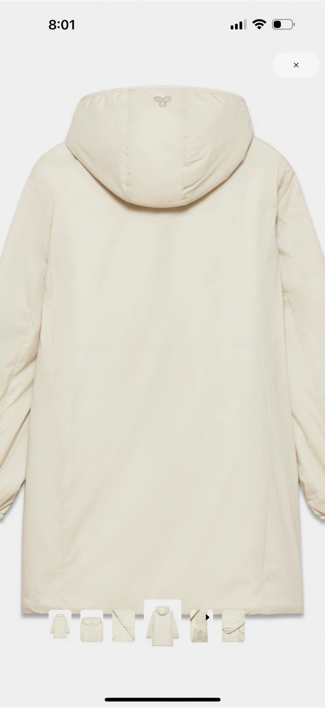 1000+Selling a TNA Climate Lab Pillow Puff jacket! It's a light beige colour and features Primaloft Black Insulation, which is made with 100% recycled materials. The Climate Lab fabric is water-repellent too, so it's great for all kinds of weather!