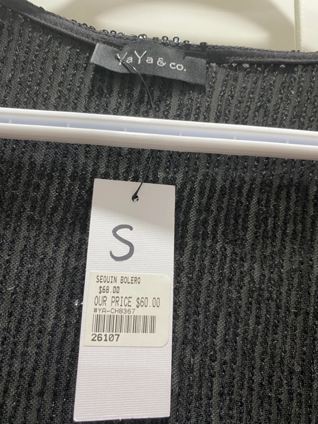 Selling a YaYa & Co. sequin bolero in size small. It's a beautiful black colour and would be perfect for a night out! The original price was $60.