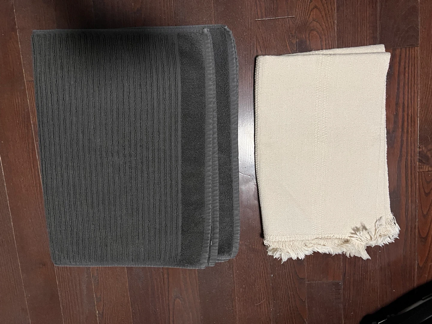 Selling 3 ikea mat : one is grey and has a ribbed texture, the other is white with a fringed edge