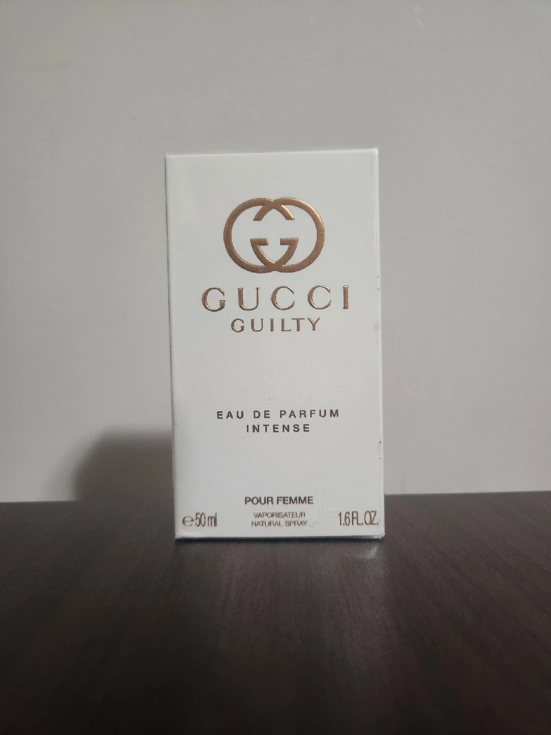Authentic Gucci Guilty Intense Eau de Parfum in its sleek, bold glass bottle with a deep amber-toned finish and signature Gucci design. This fragrance is rich, sensual, and powerful with a warm blend of amber, floral accords, and spicy undertones—perfect for evening wear or a strong signature scent.