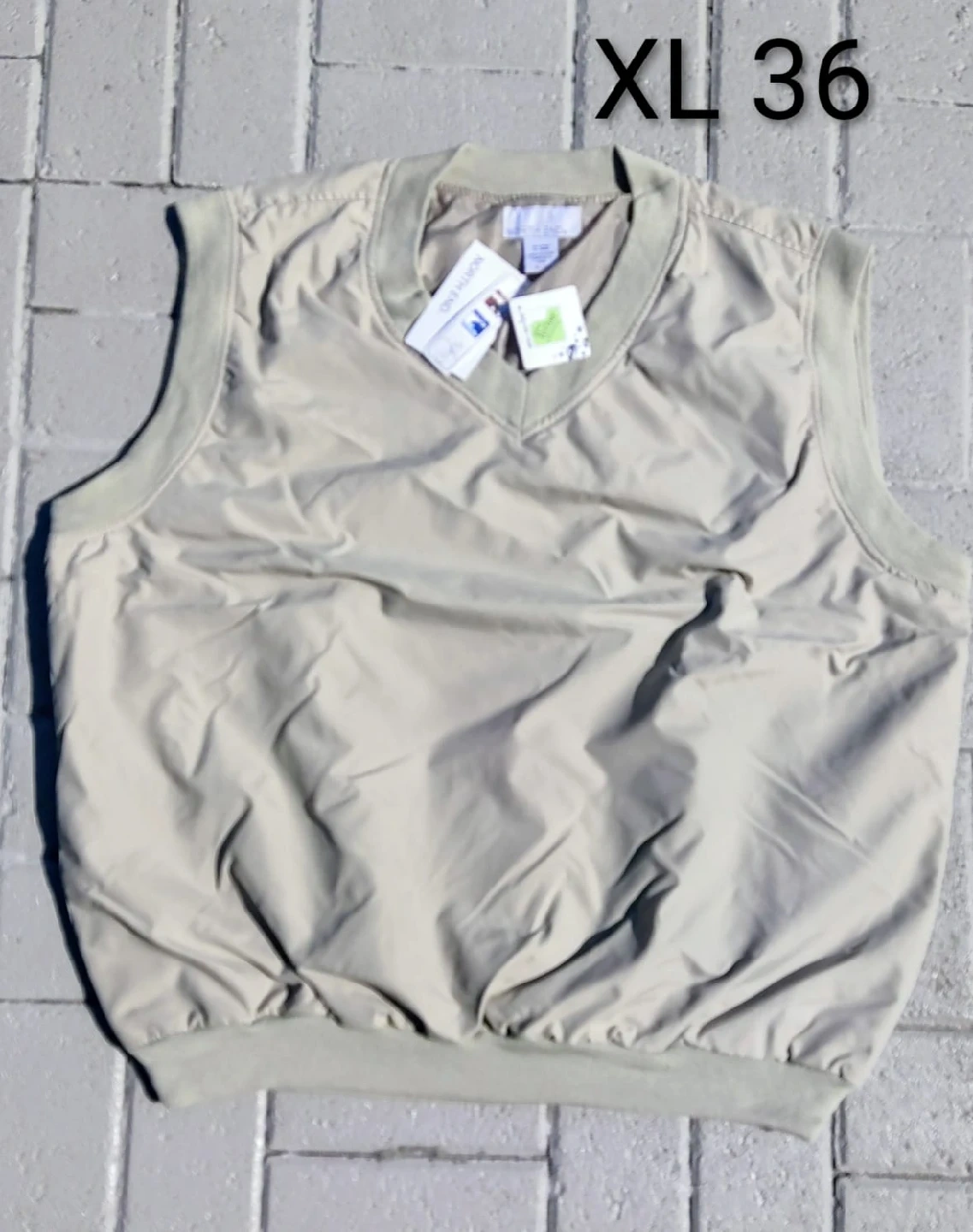 109I'm selling a brand new North End golf wind vest, still with tags attached! It's a size XL and perfect for layering on those breezy days on the course. The vest is a light beige colour and features a V-neck design. Great for keeping your core warm without restricting your swing! size XL