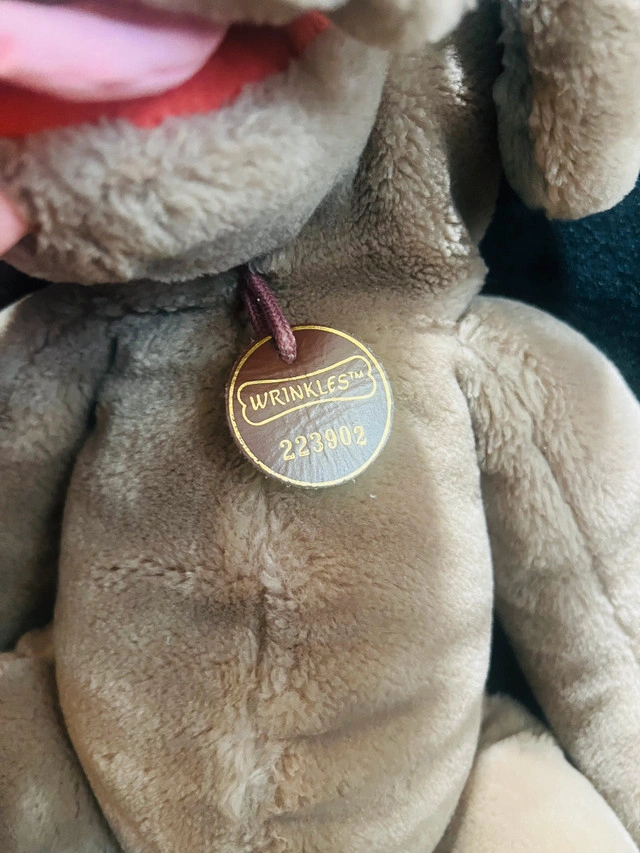 113This vintage Wrinkles dog plush from The Heritage Collection is in good, cuddly condition and ready for a new home. Wrinkles is a very special floppy plush dog with a pink nose and a squishy face. * Brand: The Heritage Collection * Character: Wrinkles * Year: 1980s/1990s * Size: Approximately 18 inches tall This Wrinkles plush is looking for a home! If the ad is still up, then yes, it is still available!