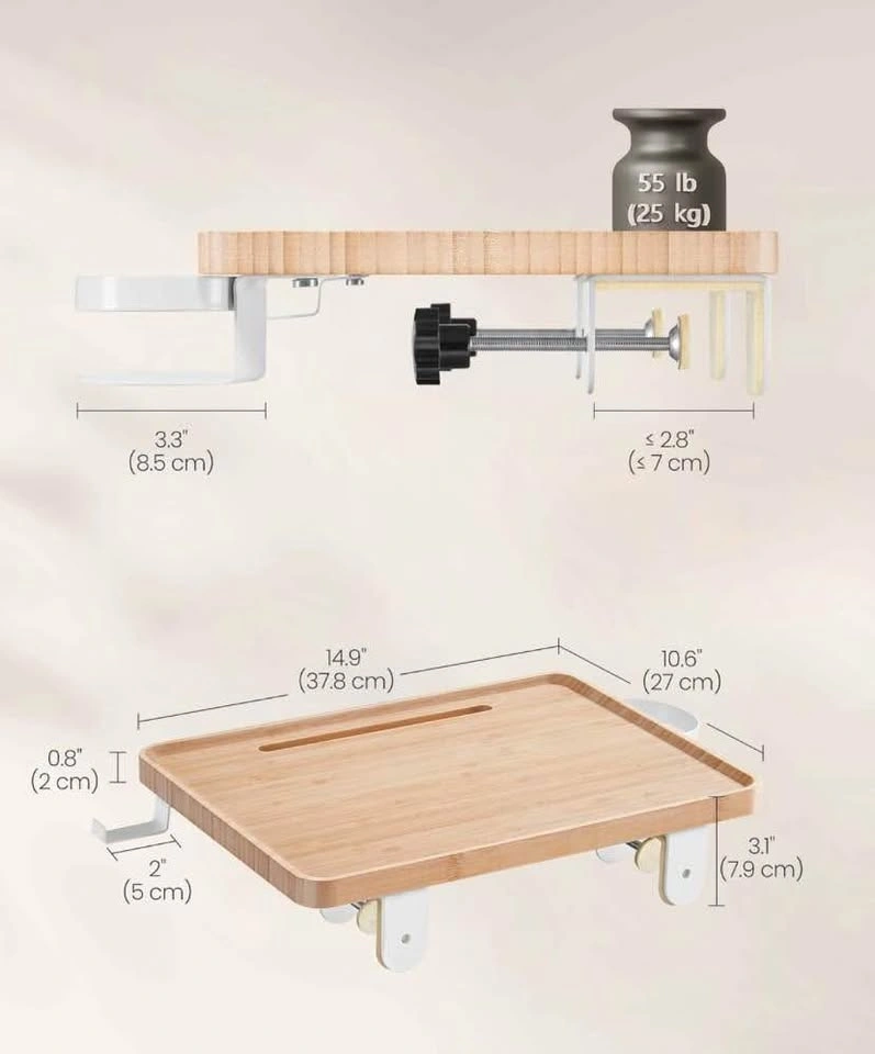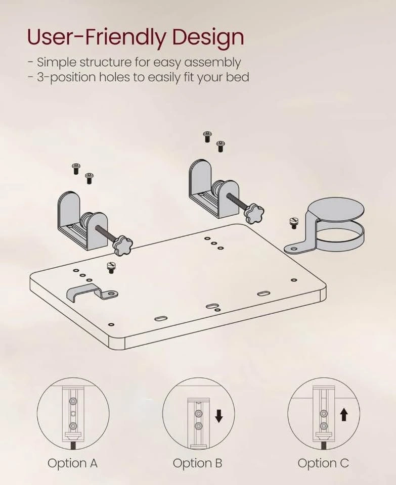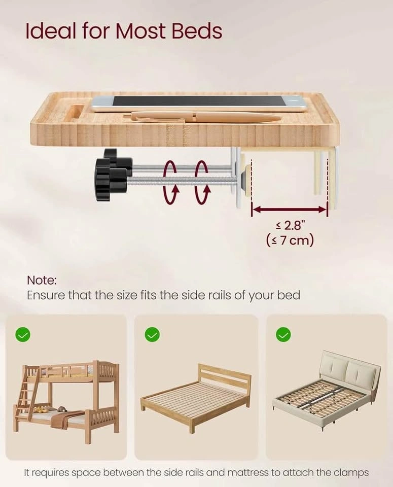 The VASAGLE Bedside Shelf keeps everything you need right within reach! With a cup holder, phone slot, and handy hook, this shelf easily clamps onto your bunk or loft bed—perfect for dorms or small spaces.