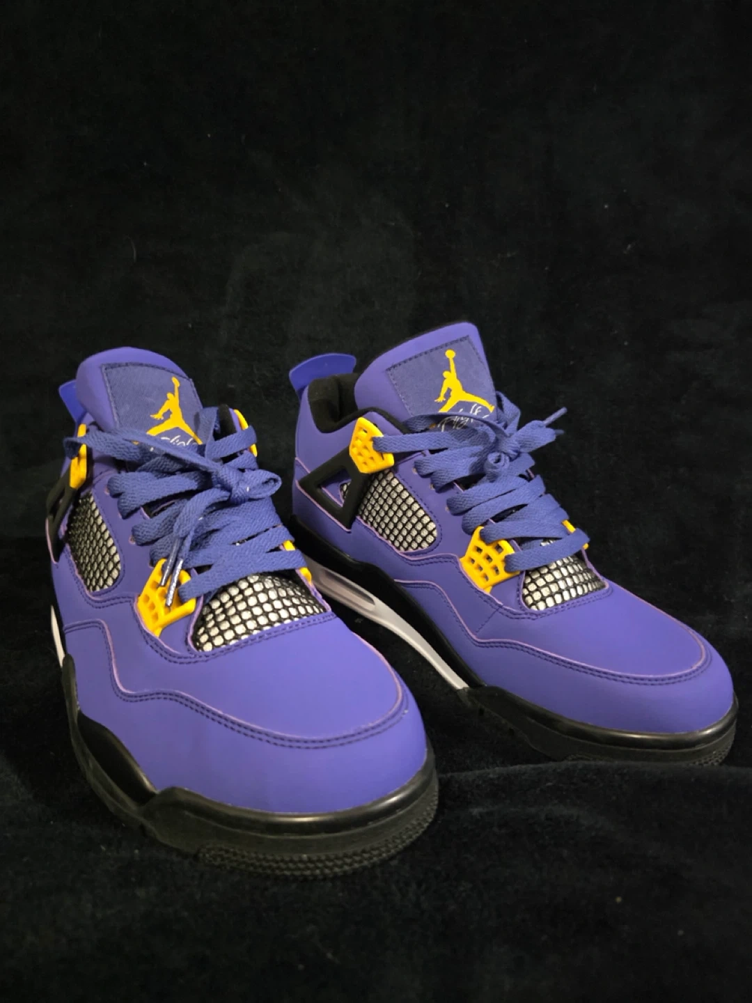 These Jordan 4 Retro Raptors Drake OVO sneakers are in great condition and ready for a new home! The vibrant purple colourway really makes them stand out. Perfect for adding a pop of colour to your wardrobe!