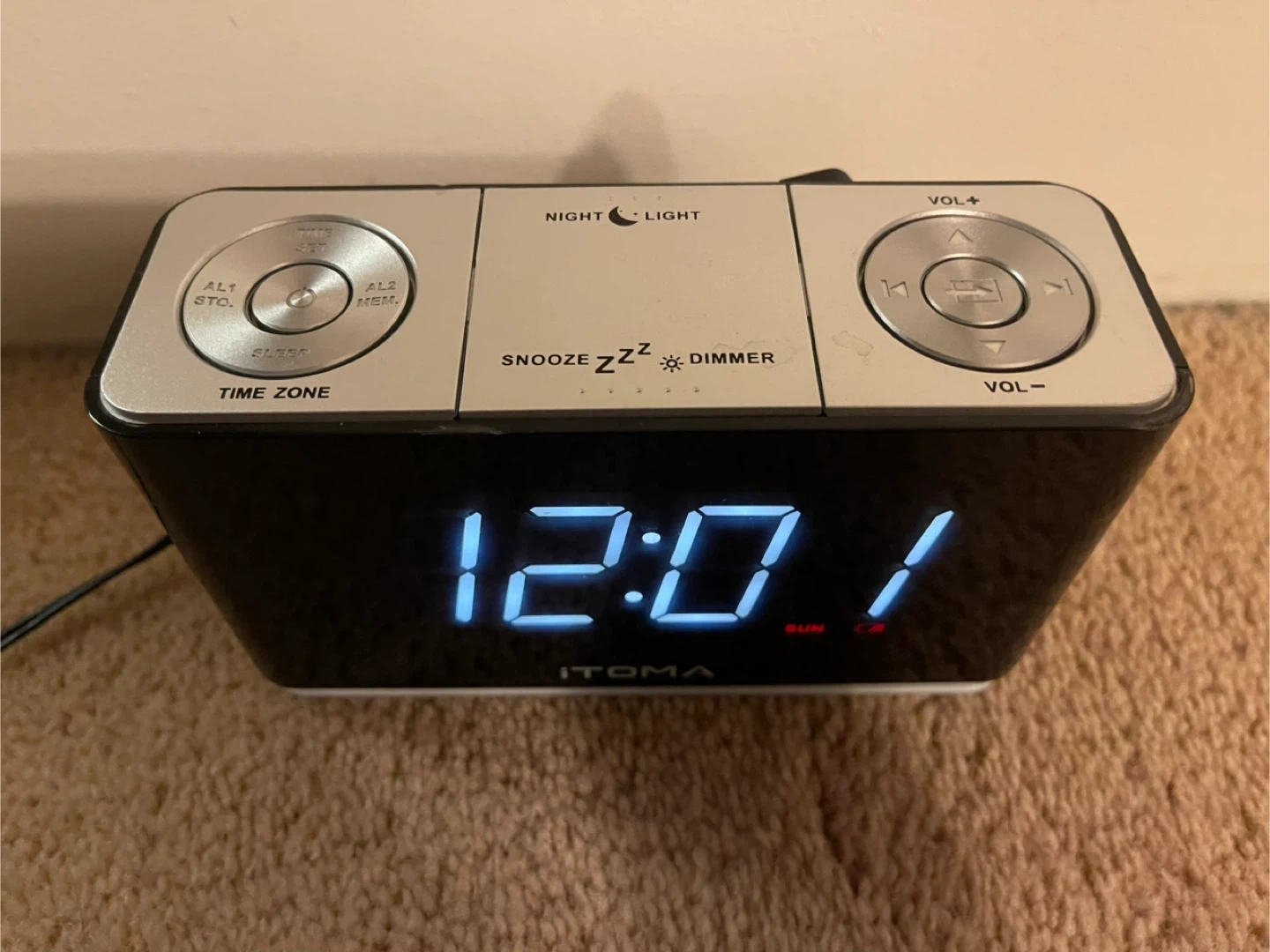 20Selling an ITOMA digital alarm clock. It features a night light and dimmer function, as well as snooze. It also has an aux in and USB charging port!