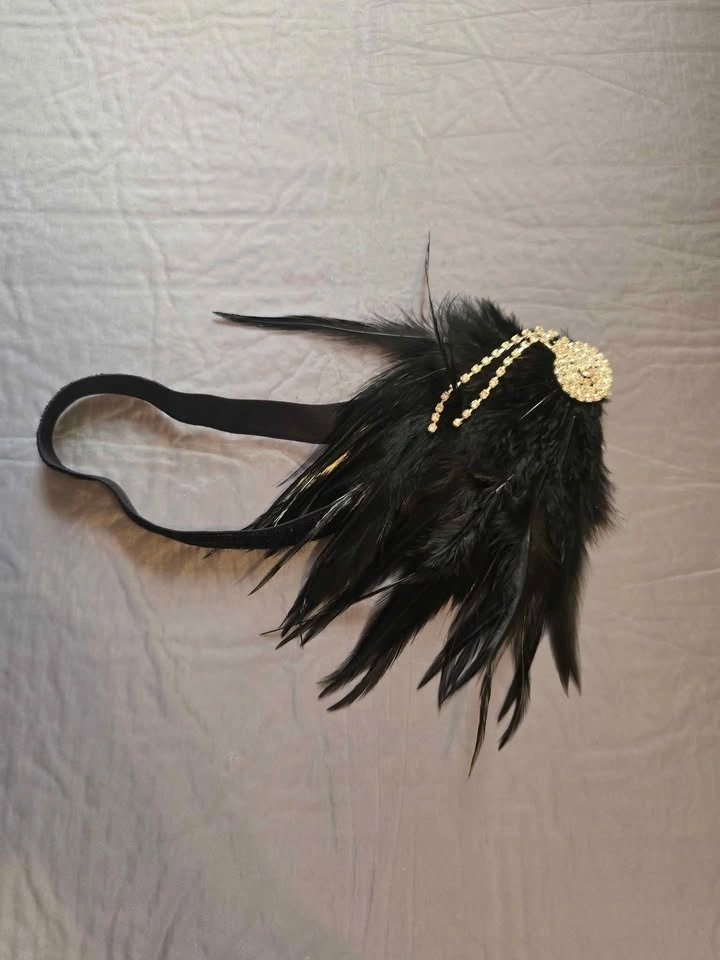 117Turn heads this Halloween with this elegant black feather headband featuring a glittery elastic band, gold rhinestone brooch, and dangling crystals for that 1920s Gatsby-inspired glam look! ๐ชถ Condition: Brand New ๐ชถ Color: Black with gold rhinestone accents ๐ชถ Style: Flapper / Gatsby / Vintage glamour ๐ชถ Perfect for: Halloween parties, Roaring 20s costumes, burlesque, themed events, or photo shoots ๐ต Asking: $10 ๐ Pickup in Mission near Centennial Park