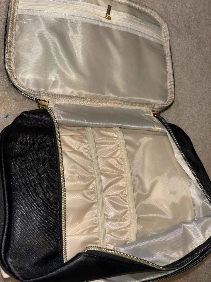 117Stylish and practical organizer bag with multiple compartments and zipper pockets โ perfect for toiletries, cosmetics, makeup, cables, or travel accessories. Lightweight with an elegant beige satin-style interior for a clean, classy look. Great for travel or as a thoughtful gift for someone who loves to stay organized. Asking $10. Pickup in Mission near Centennial Park.