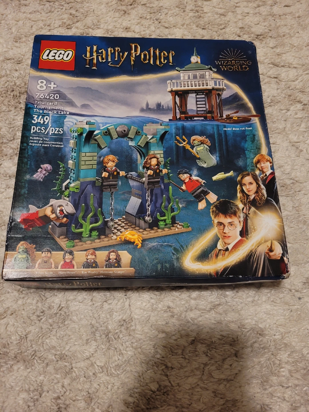 Selling a LEGO Harry Potter set, Triwizard Tournament: The Black Lake (set number 76420)! This set includes 349 pieces, note that the box is damaged, see photos