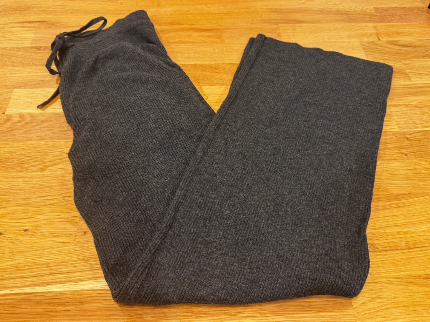 Selling a pair of Uniqlo ribbed pants in size XS extra small! They're a darker grey colour and super comfy. The waist measures 24-25 inches, and the hips measure 34-35 inches. Perfect for lounging or casual wear. Like new condition.