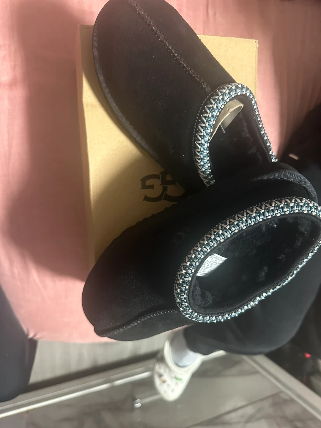Selling a pair of UGG Tasman slippers in black! These are super comfy and in great condition. They come with the original box