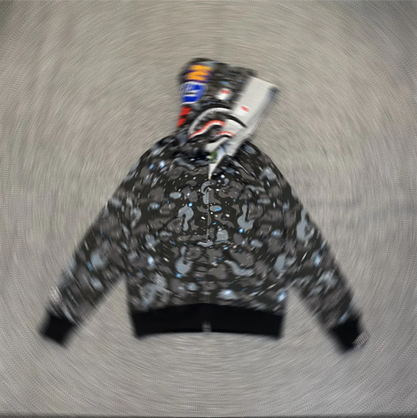 Selling a BAPE (A Bathing Ape) full zip hoodie with the iconic shark design and camo pattern. Comes with original packaging.