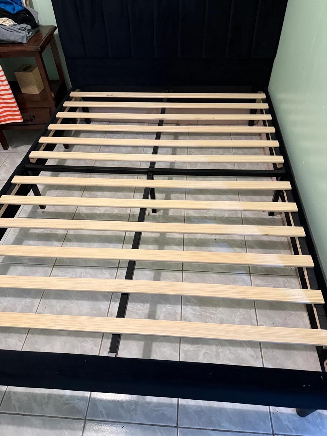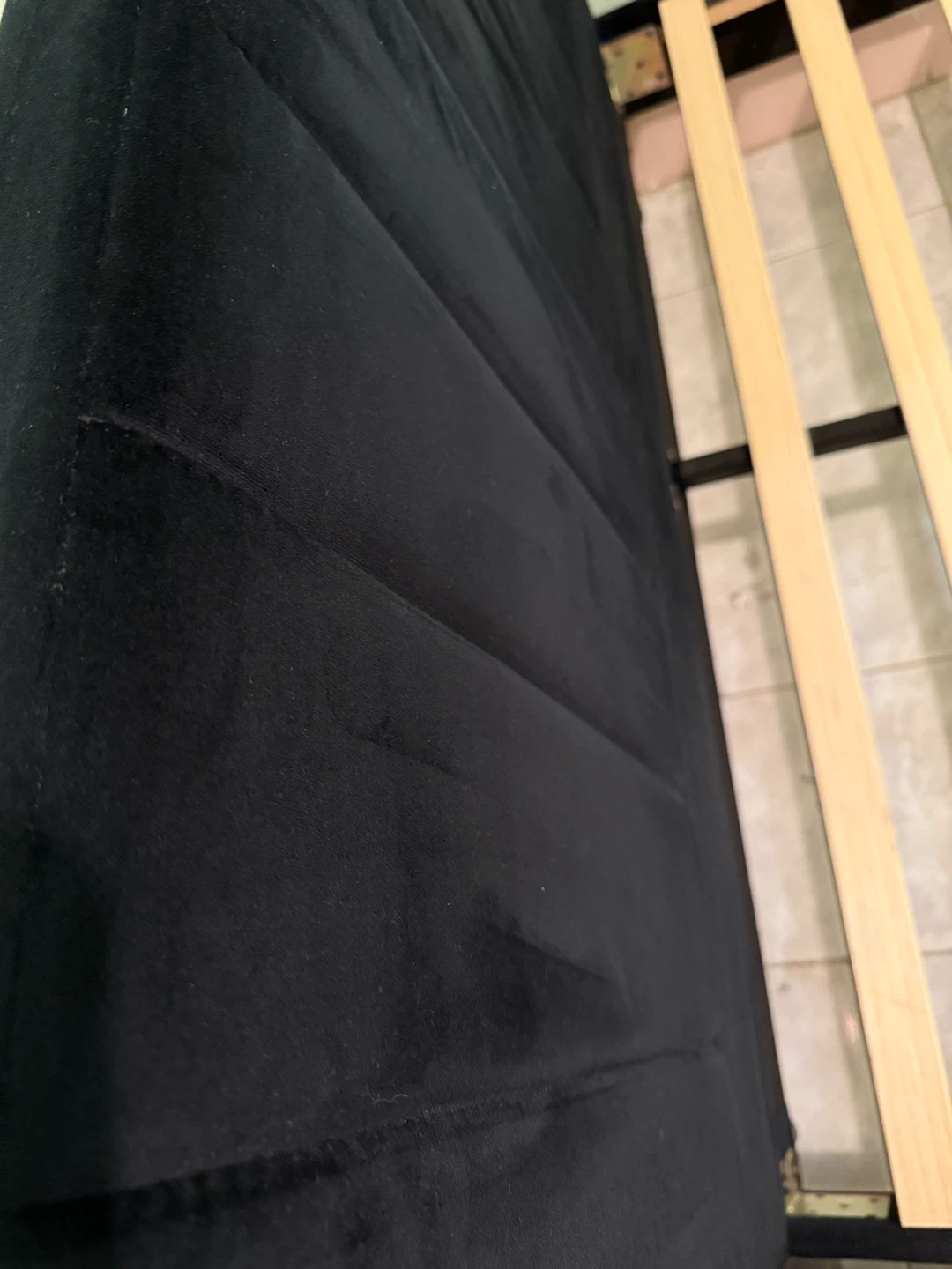 Selling a black velvet bed frame. It's in good condition and ready for a new home! The frame is sturdy and stylish, perfect for adding a touch of elegance to your bedroom